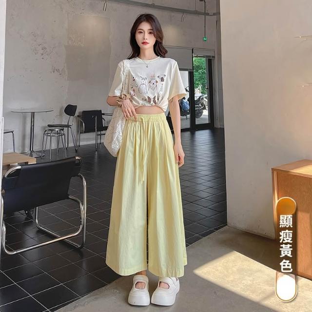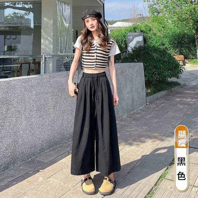 春夏款休閒褲 顯瘦百搭 九分褲天絲洗水棉褲裙春夏款2026新款高腰寬松顯瘦垂感休閑闊腿褲 沂洋商城