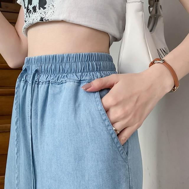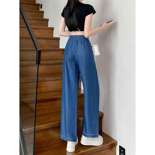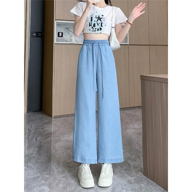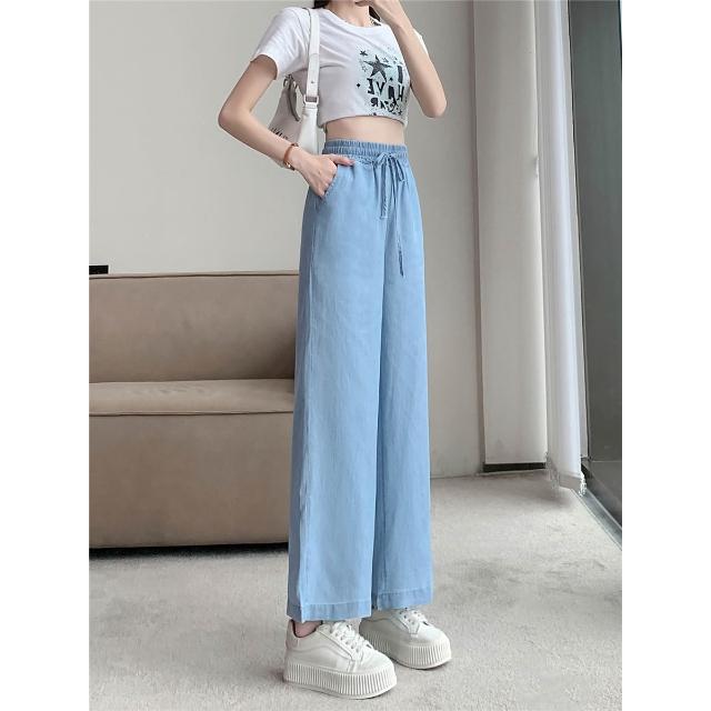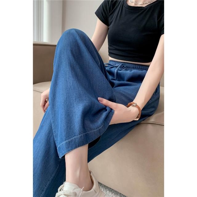 春夏款休閒褲 顯瘦百搭 實拍冰絲闊腿褲女夏季薄款2025天絲牛仔褲子女九分女士休閑直筒褲 沂洋商城