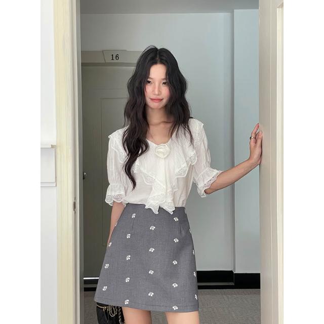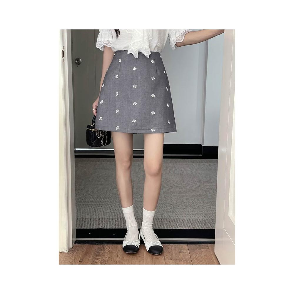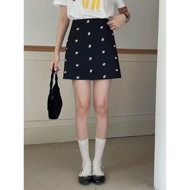 夏季裙子 短裙 牛仔裙 [sst半糖夏日 重工花朵刺繡面料]歌銘A字包臀半身短裙女Y3828F 沂洋商城