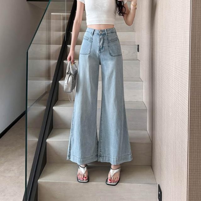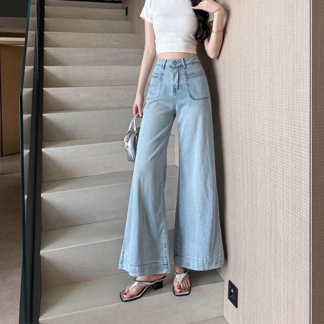 春夏款褲子 牛仔褲 實拍2026春夏新款天絲小個子牛仔闊腿褲女時尚薄款顯高九分喇叭褲 沂洋商城