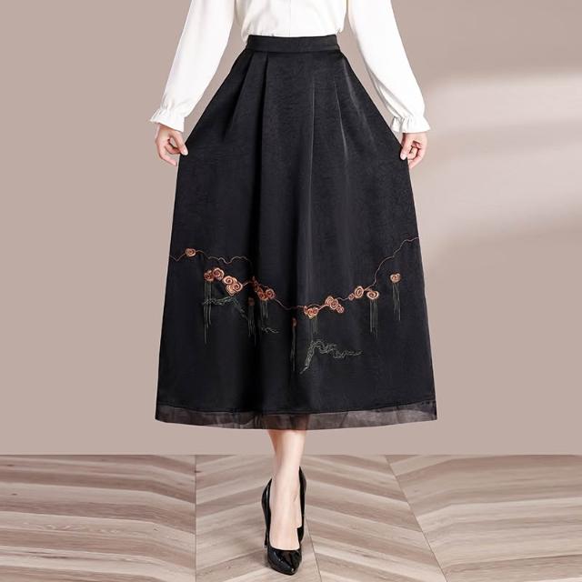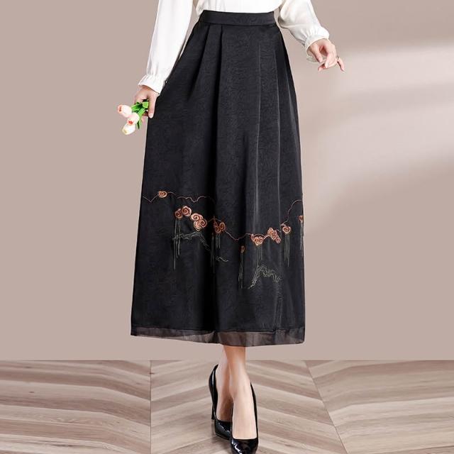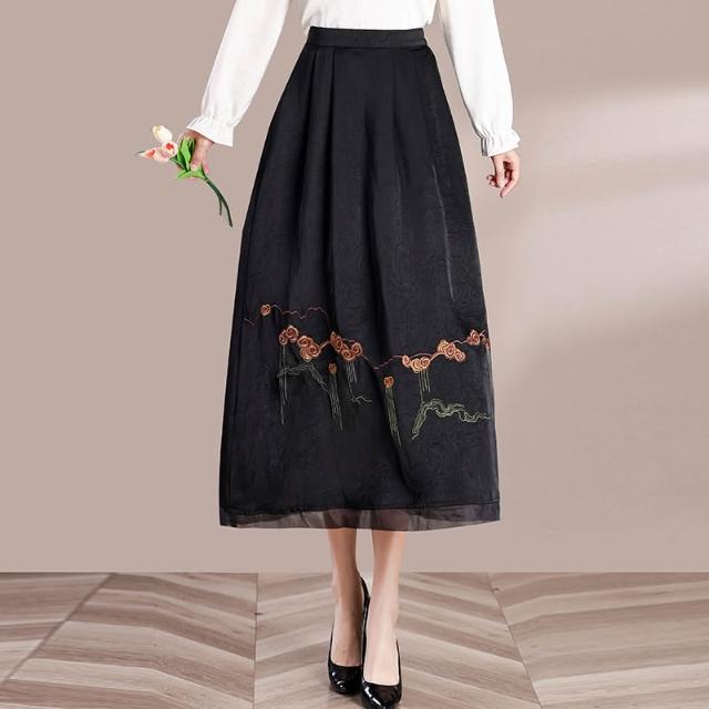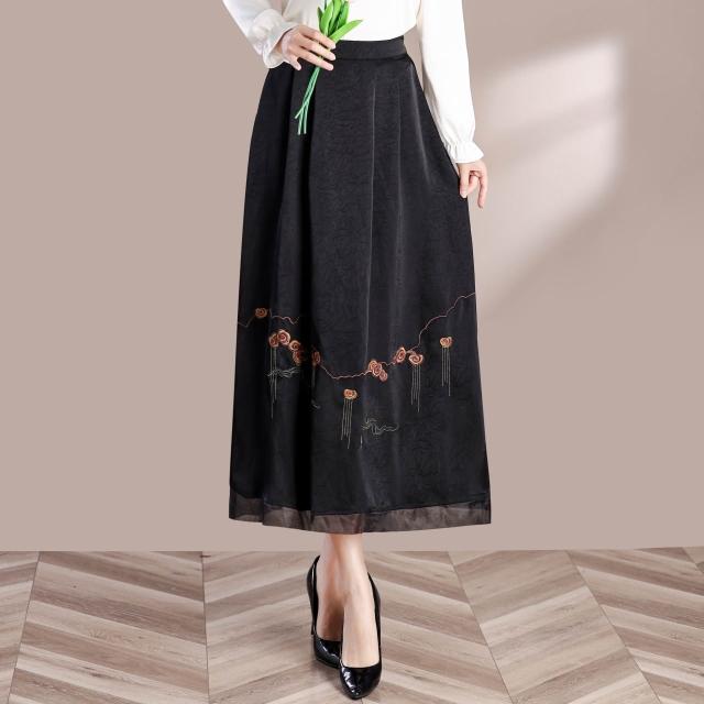 夏款裙子 半身裙 媽媽裝中國風香雲紗裙子2025新款復古提花高腰桑蠶絲真絲半身裙 沂洋商城
