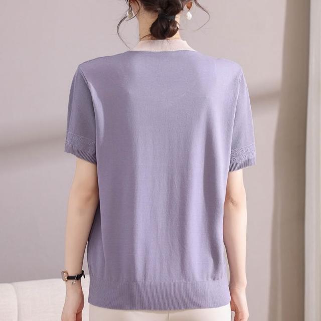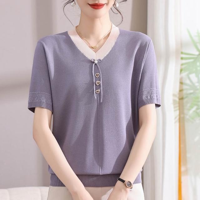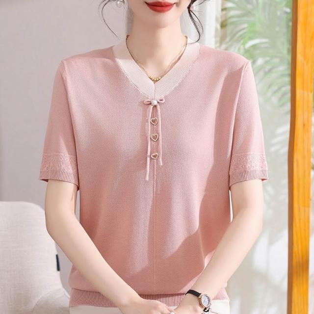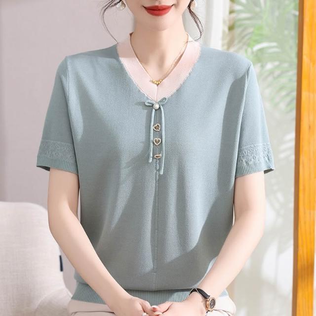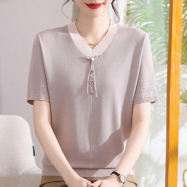 夏季上衣 短袖 T恤 新款夏季媽媽裝短袖中年女士針織上衣寬松冰絲小衫洋氣婆婆打底衫 沂洋商城