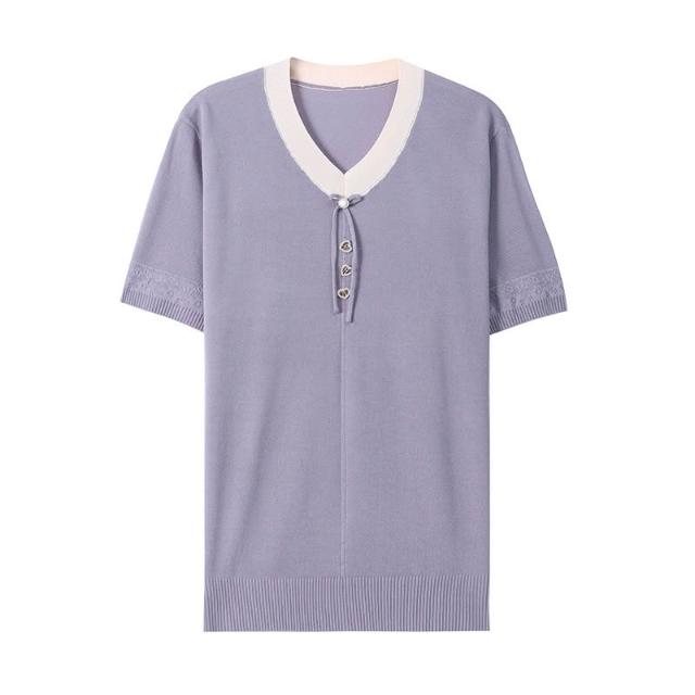 夏季上衣 短袖 T恤 新款夏季媽媽裝短袖中年女士針織上衣寬松冰絲小衫洋氣婆婆打底衫 沂洋商城