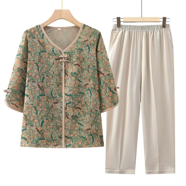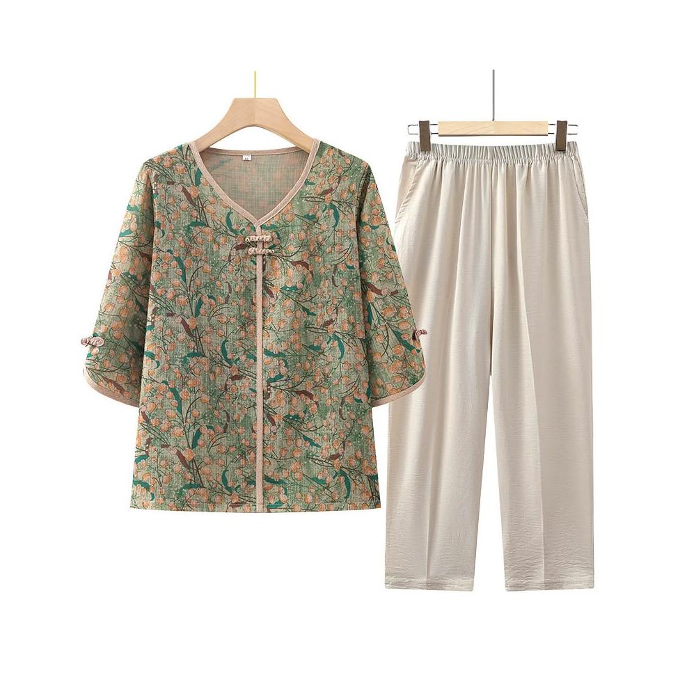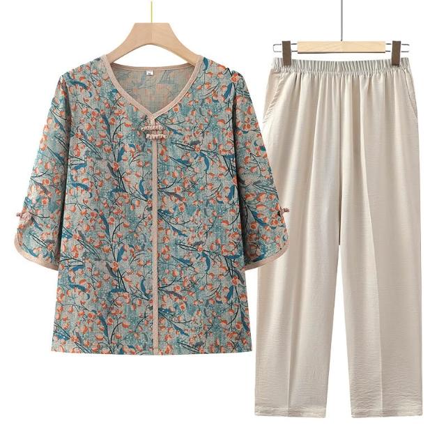 夏季服裝 兩件套裝 短袖 中老年人夏裝休閑套裝2026夏季新款中年媽媽洋氣短袖褲子兩件套女 沂洋商城