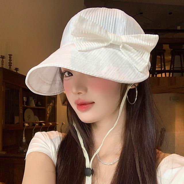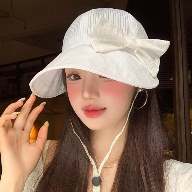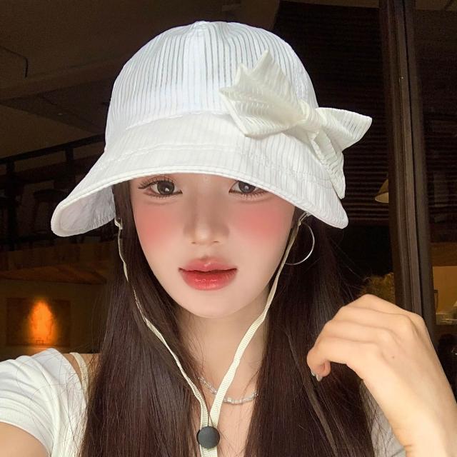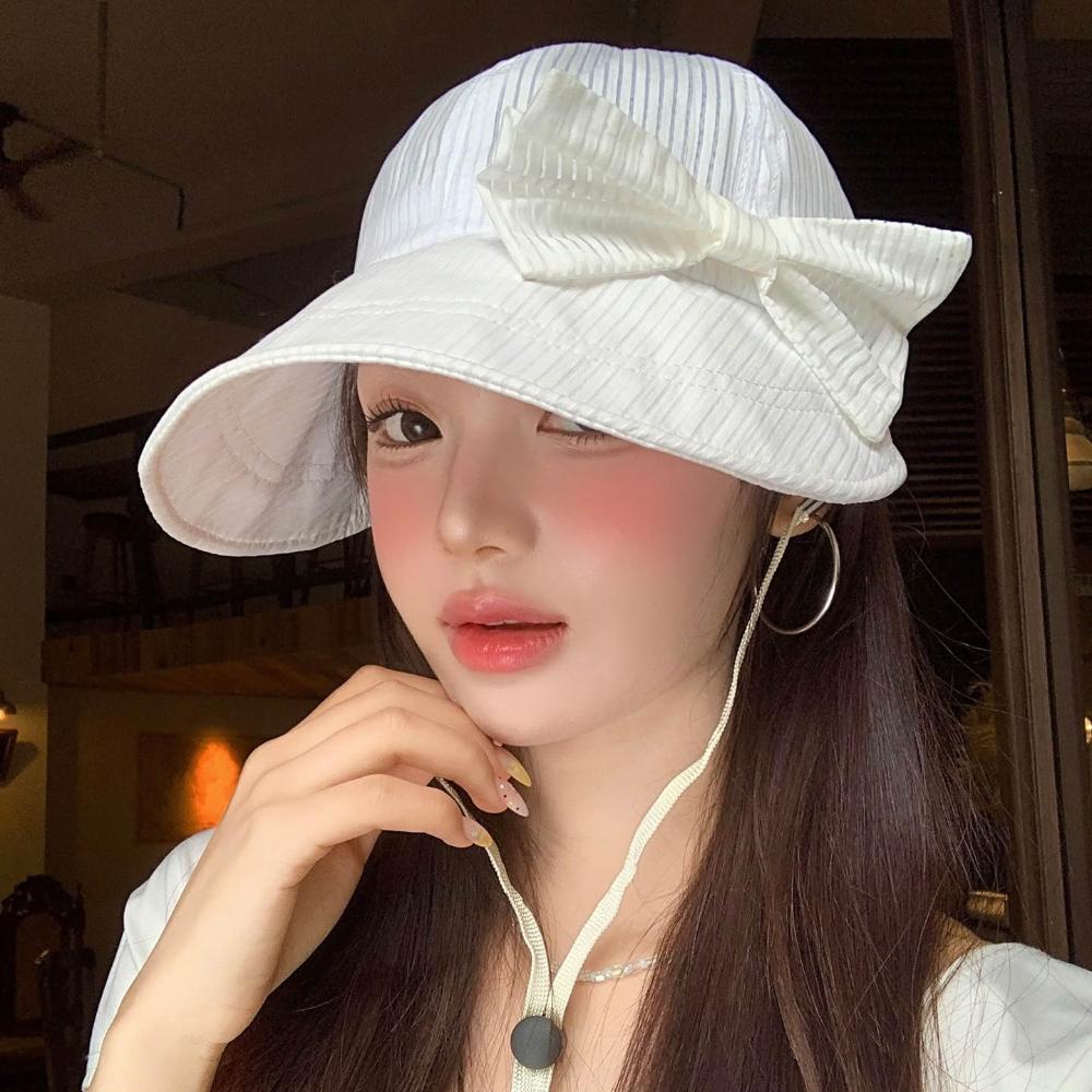 夏季帽子 漁夫帽 遮陽帽 日系甜美可愛蝴蝶結漁夫帽女夏薄款大帽檐遮陽防曬大頭圍鴨舌帽子 沂洋商城
