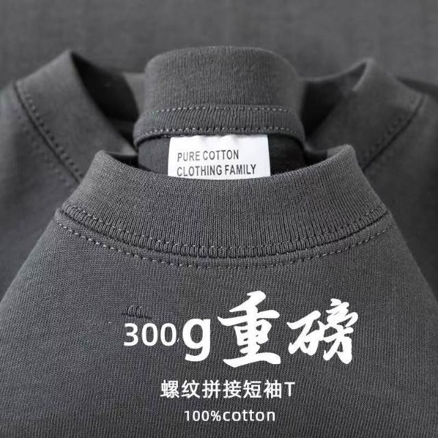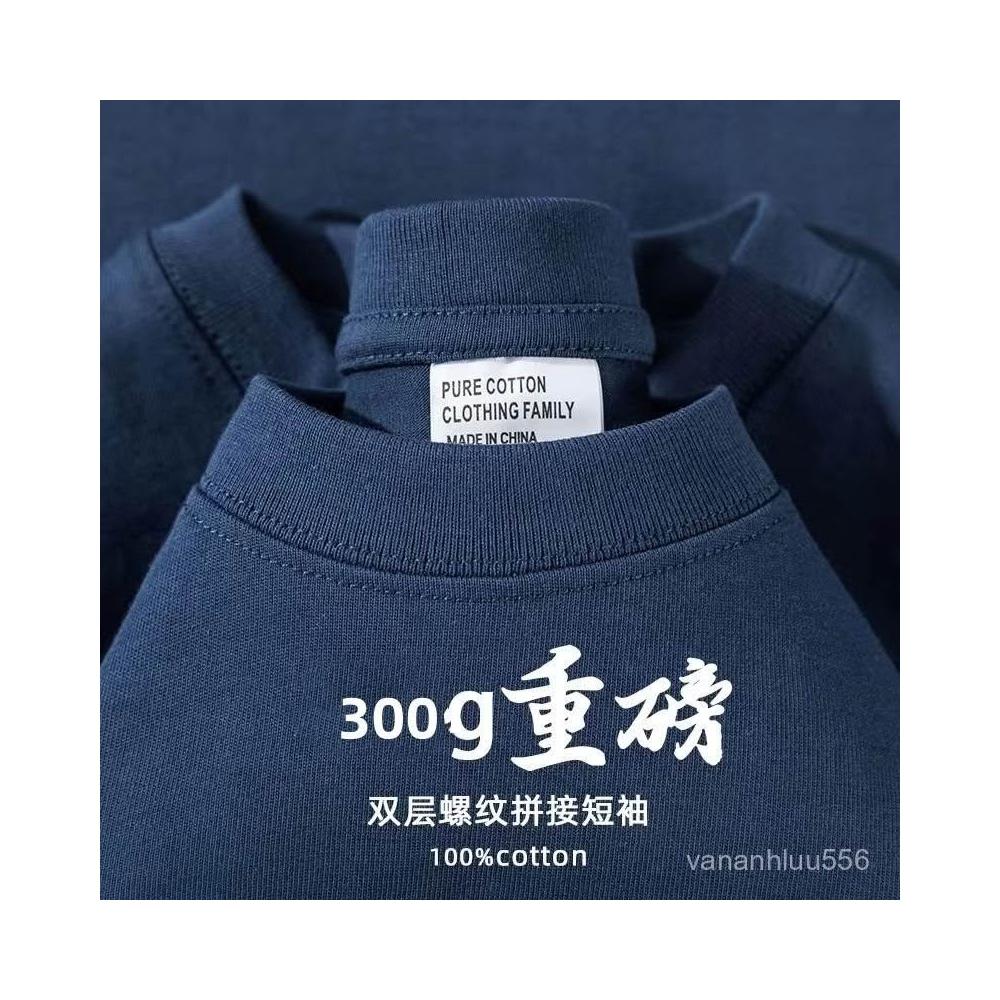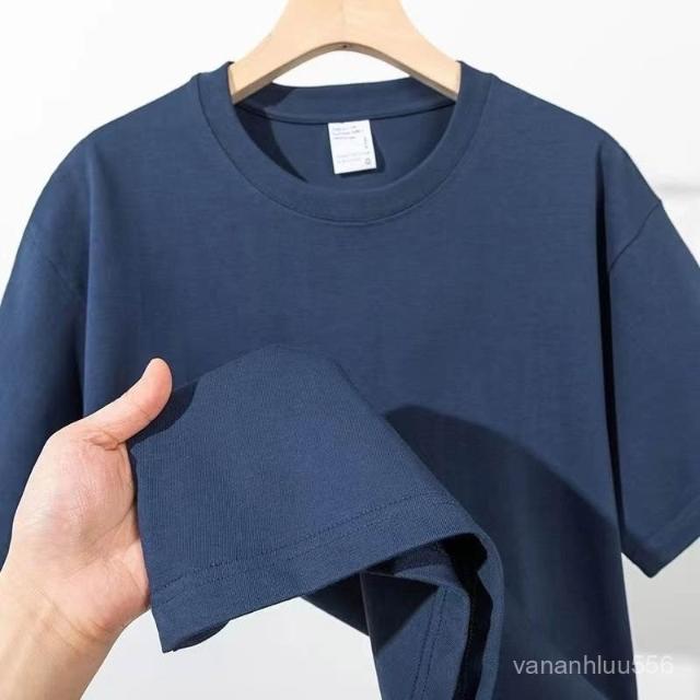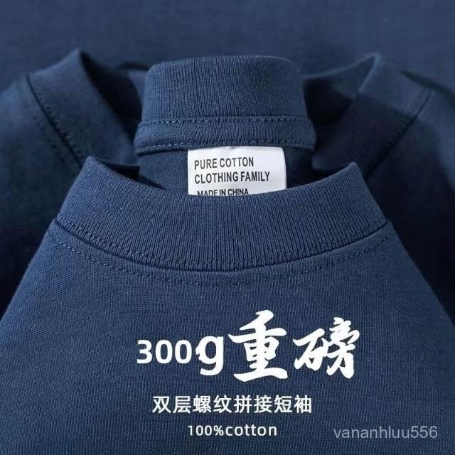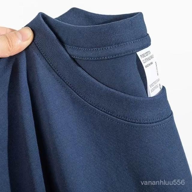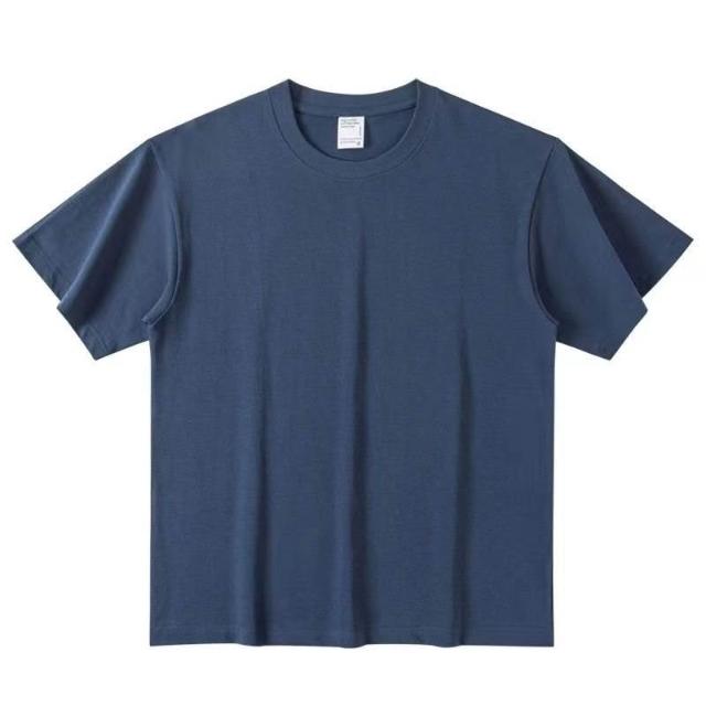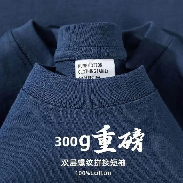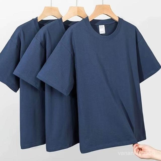 藏青色300g重磅純棉圓領短袖T恤 純色寬鬆複古運動休閒打底衫男夏