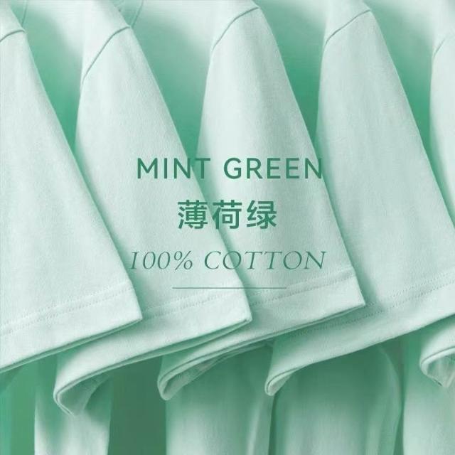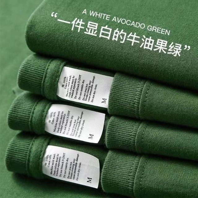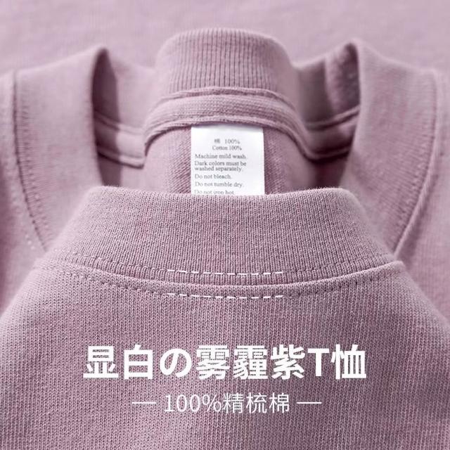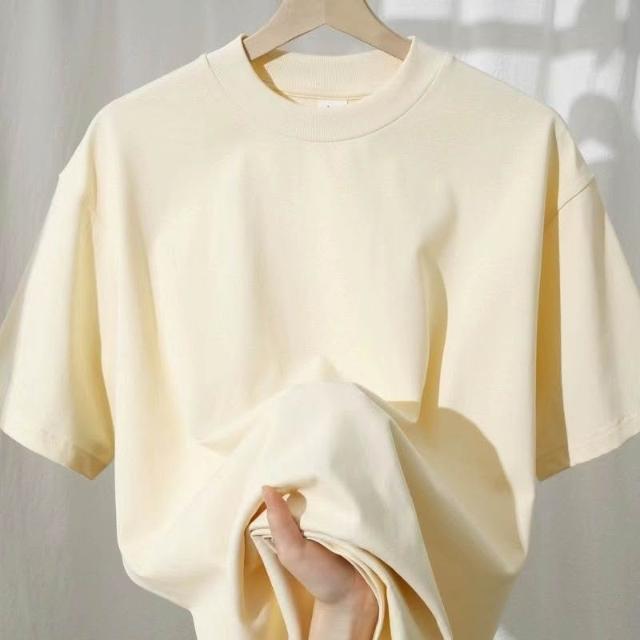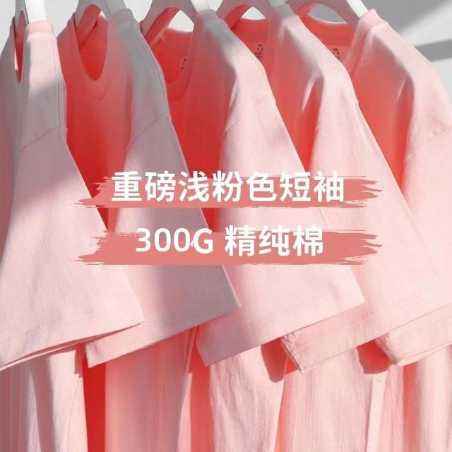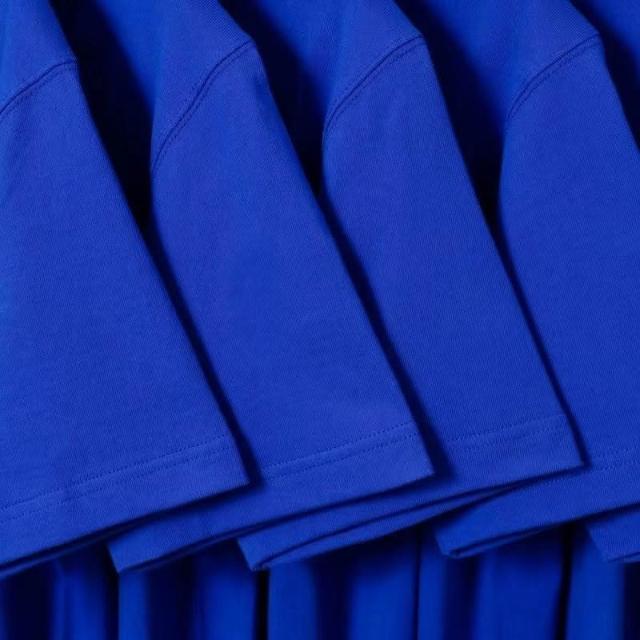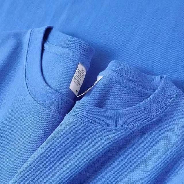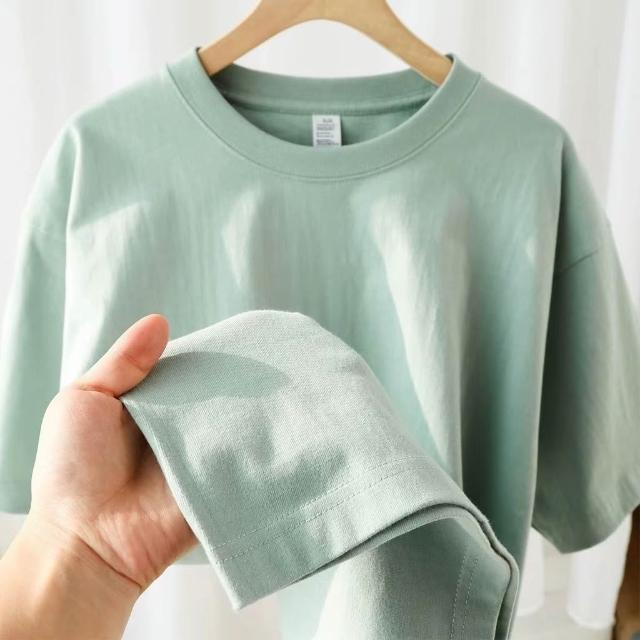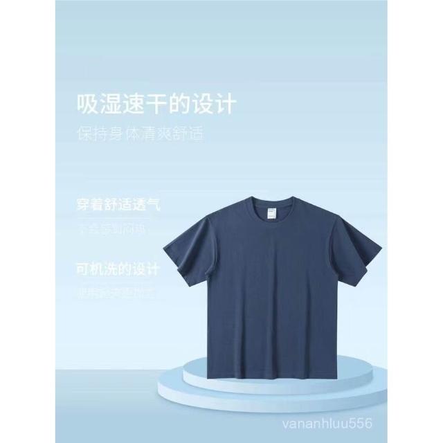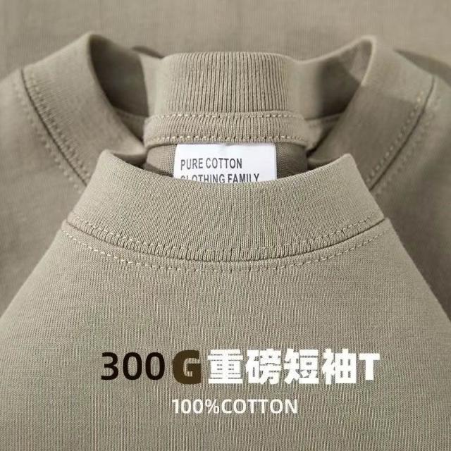 藏青色300g重磅純棉圓領短袖T恤 純色寬鬆複古運動休閒打底衫男夏