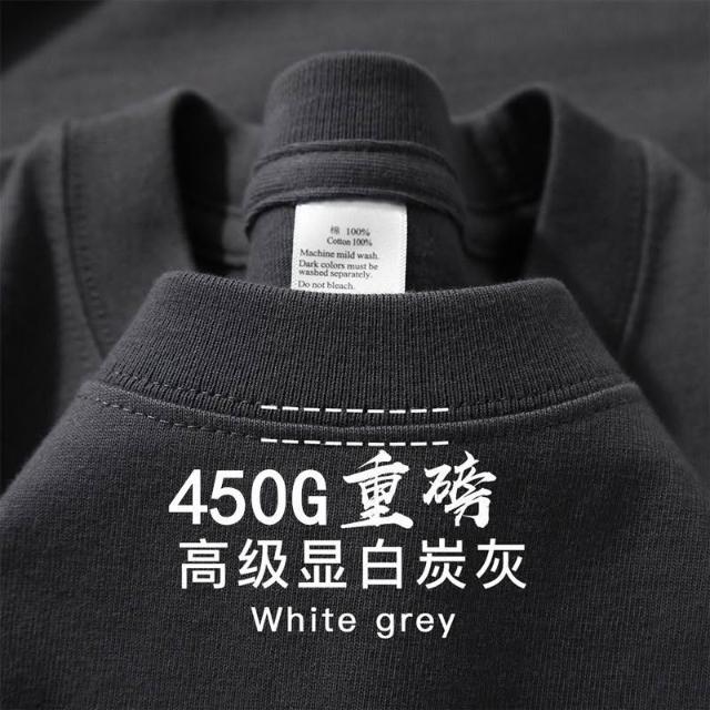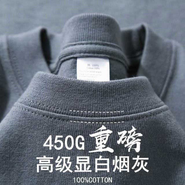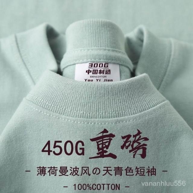 新疆棉 450g重磅純棉短袖T恤男女不透上衣夏季白色圓領寬鬆打底衫