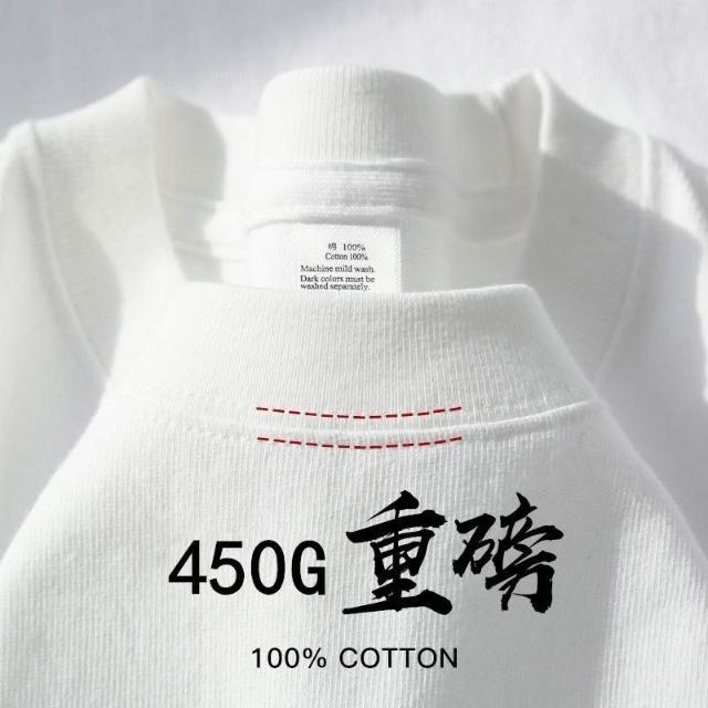 新疆棉 450g重磅純棉短袖T恤男女不透上衣夏季白色圓領寬鬆打底衫