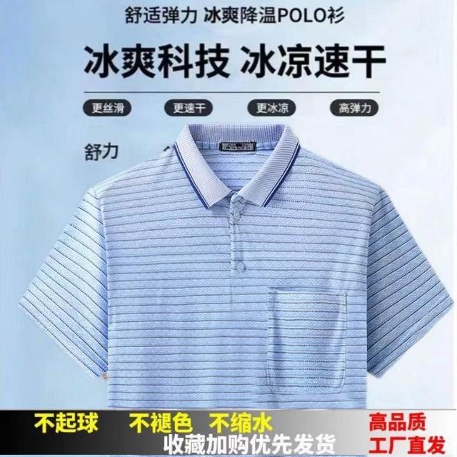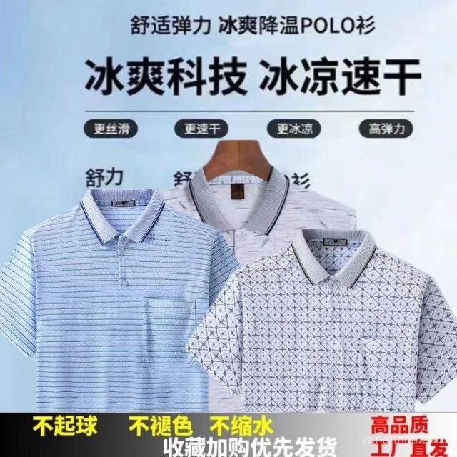 新款中年男士T恤翻領半袖上衣爸爸夏裝POLO衫中老年男士短袖T恤衫