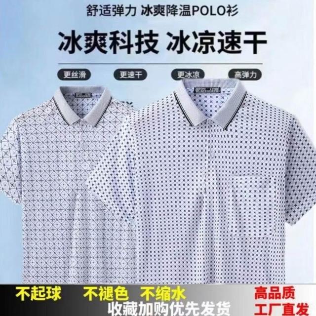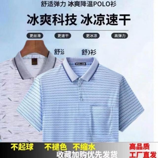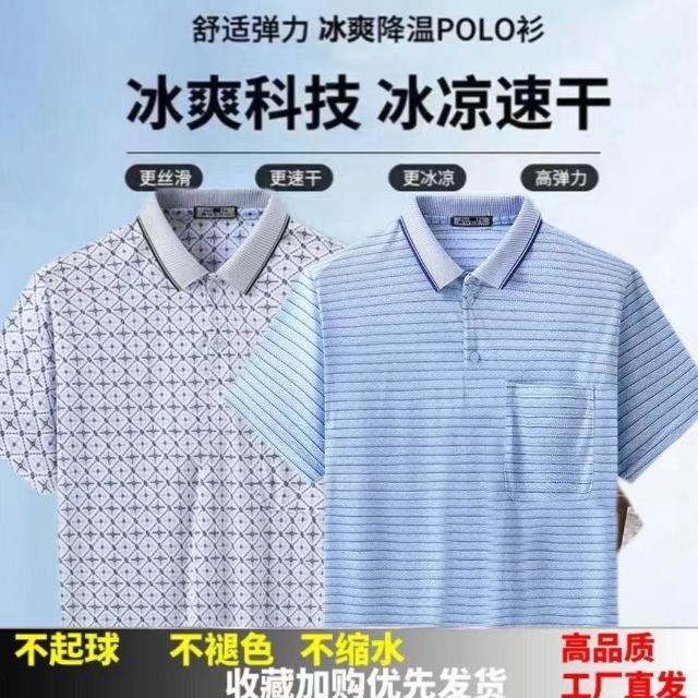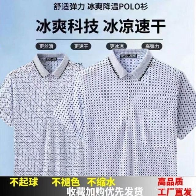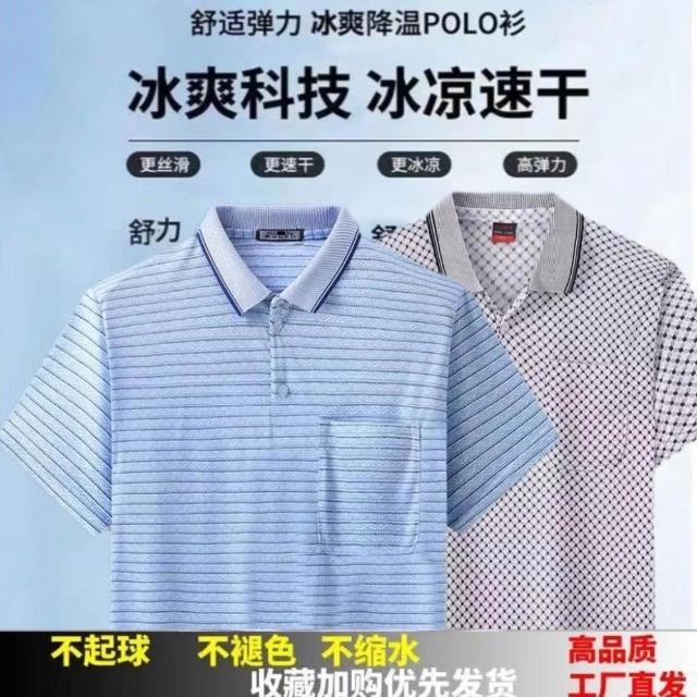 新款中年男士T恤翻領半袖上衣爸爸夏裝POLO衫中老年男士短袖T恤衫