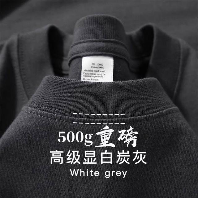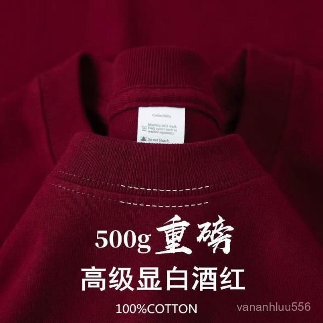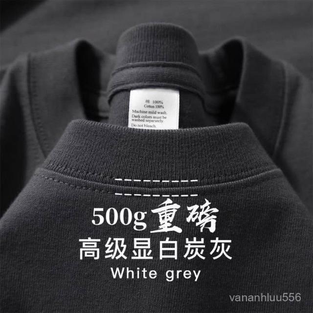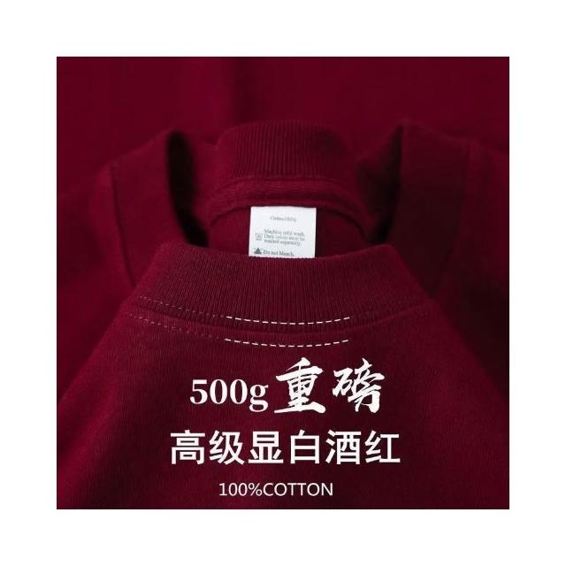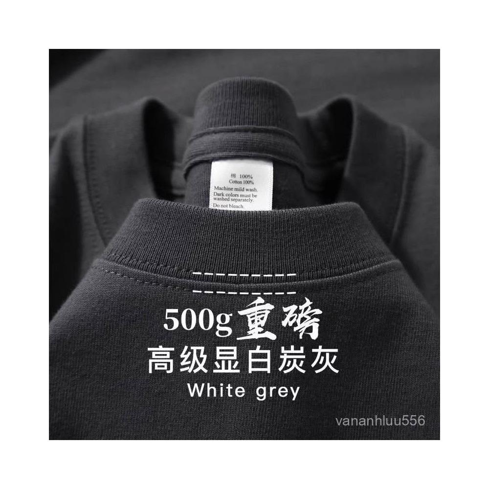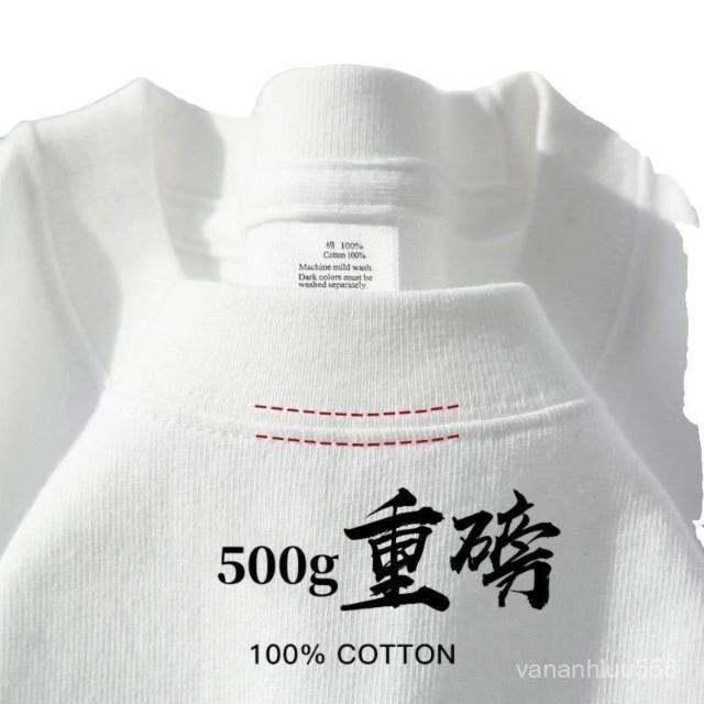 500g純棉重磅夏季小領口美式短袖T恤男女純色厚實不透寬鬆大碼潮t