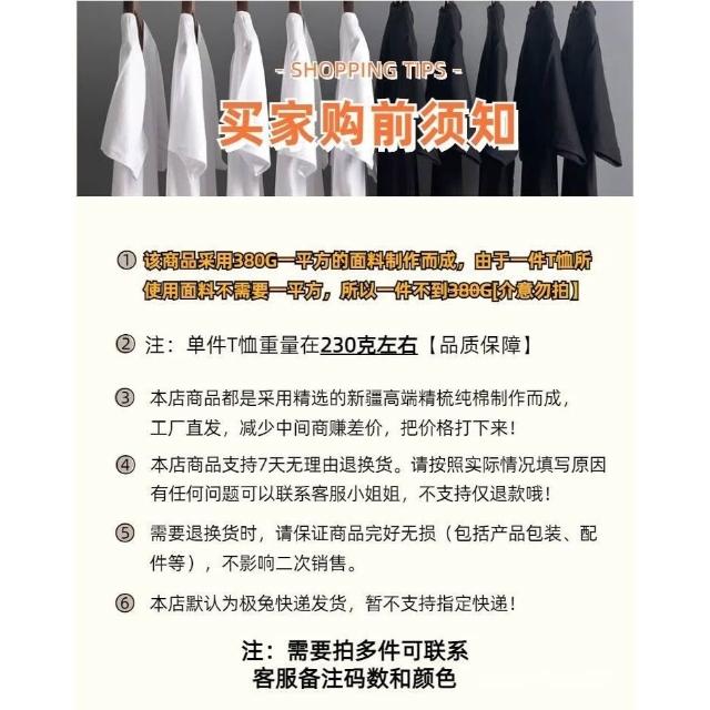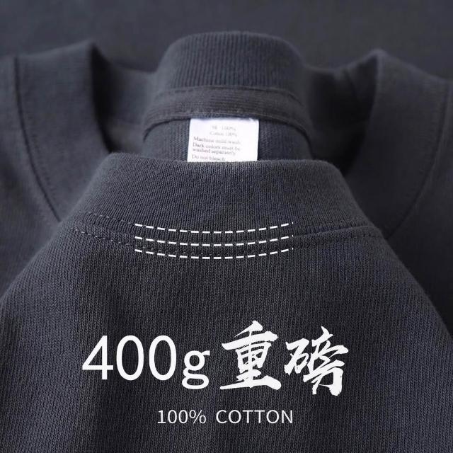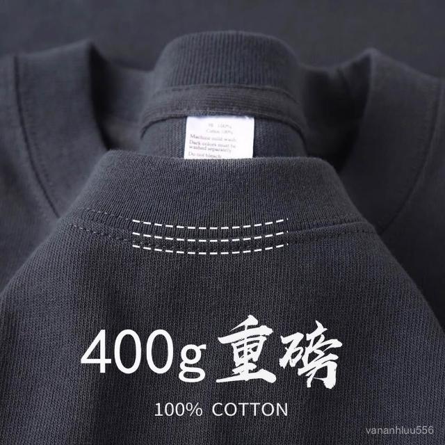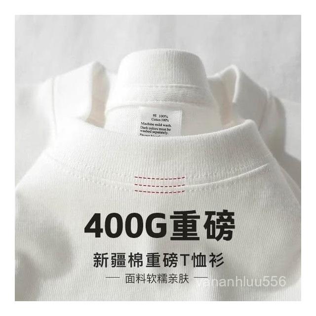 4針綫! 400g重磅厚實不透純棉短袖T恤男女款美式寬鬆純色情侶半袖