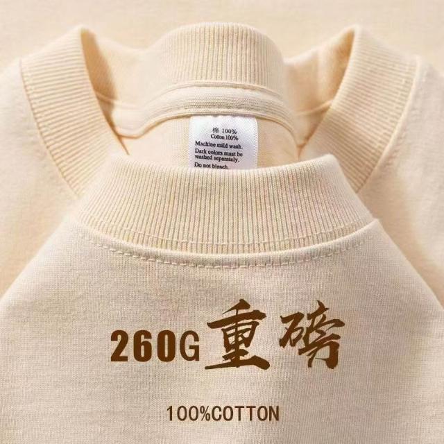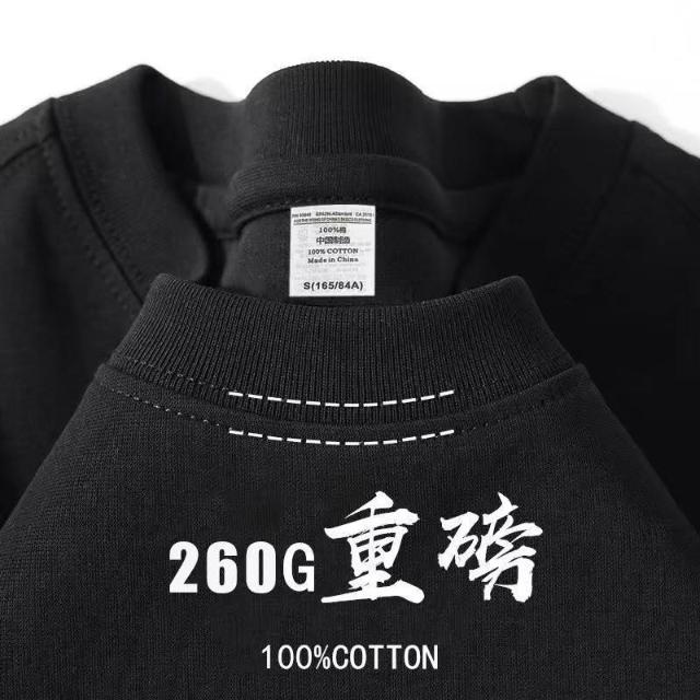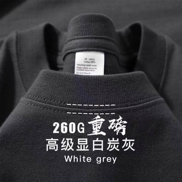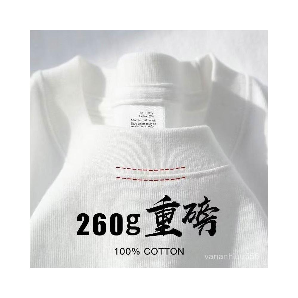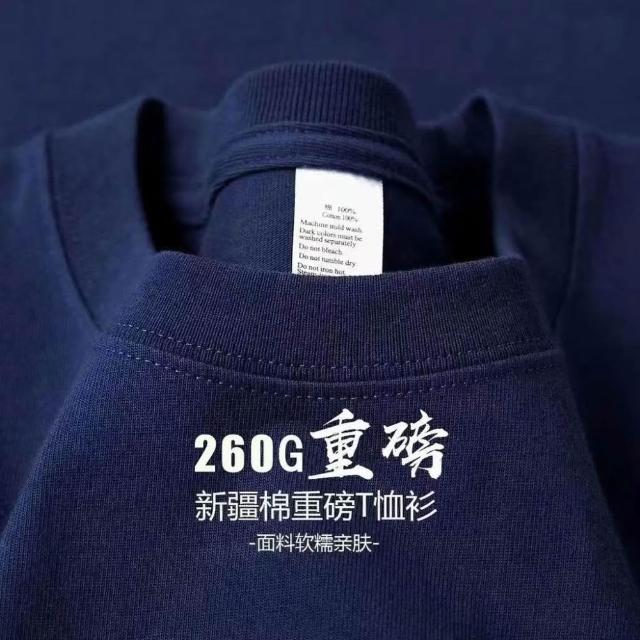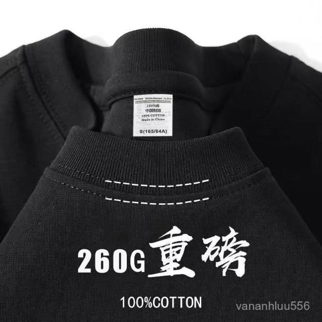 260G重磅T恤 夏季新款短袖圓領純棉T恤 寬鬆休閒純色上衣男女衕款