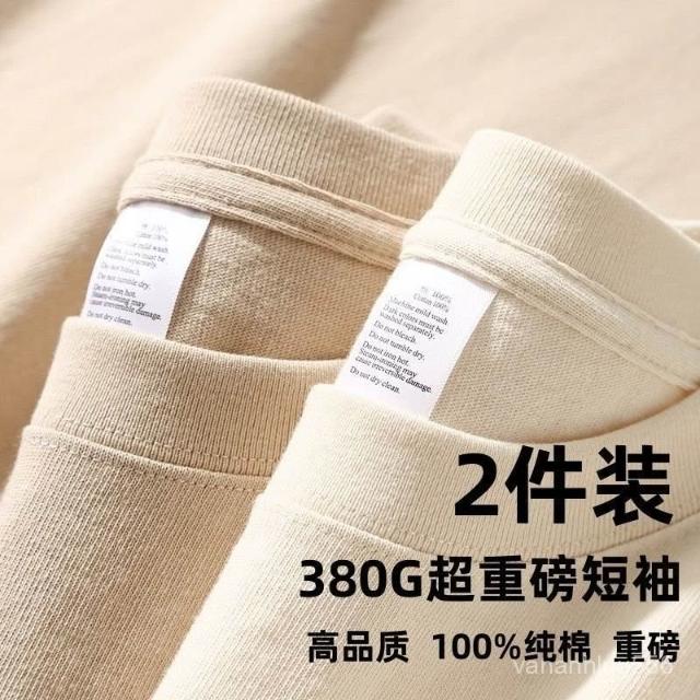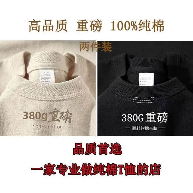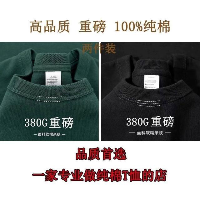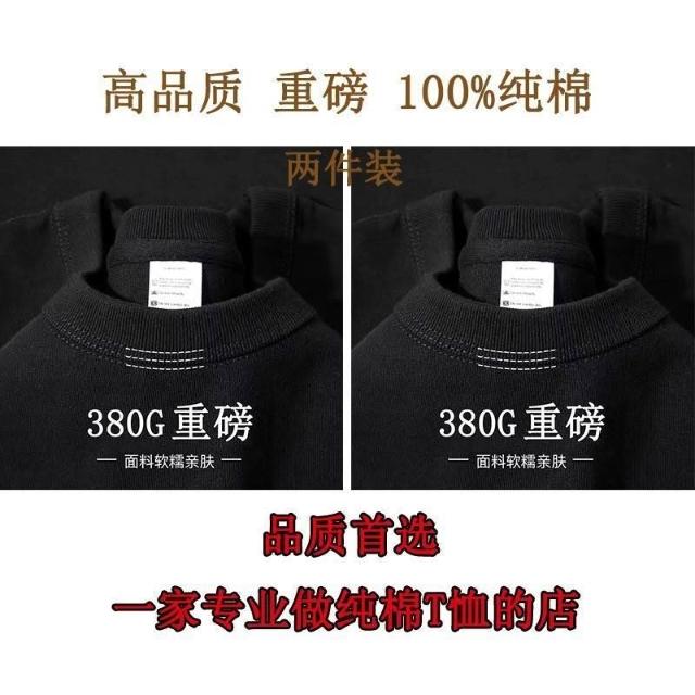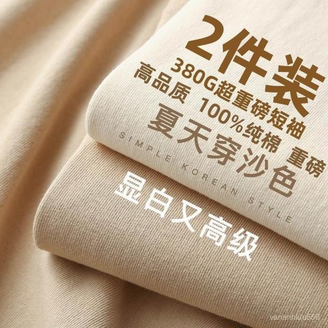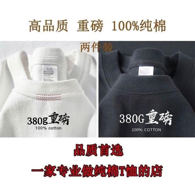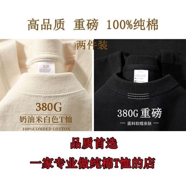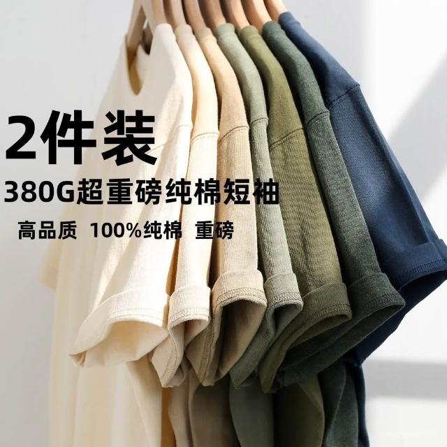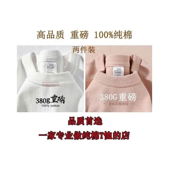 2件裝!春夏季380g超重磅純棉厚實短袖T恤女 寬鬆百搭純色半袖男
