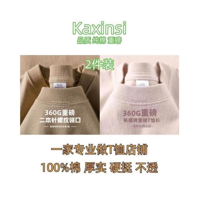 兩件裝 日係360G重磅短袖T恤男夏純棉厚實小領口大地色係美式半袖