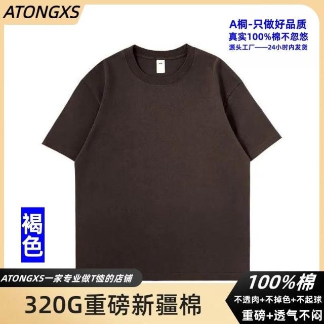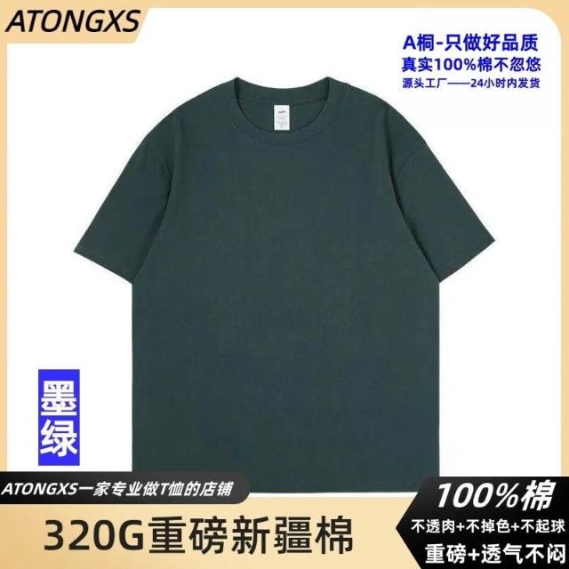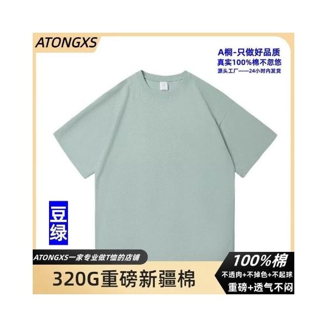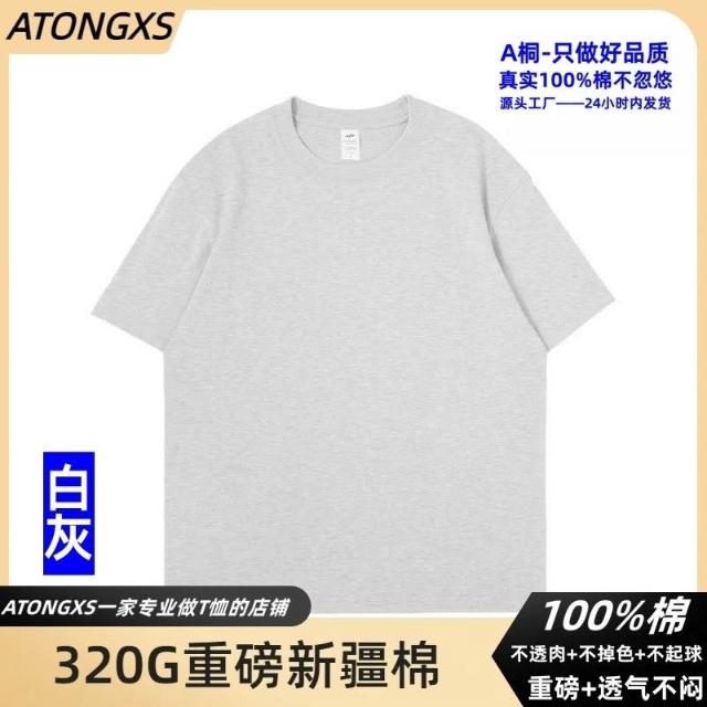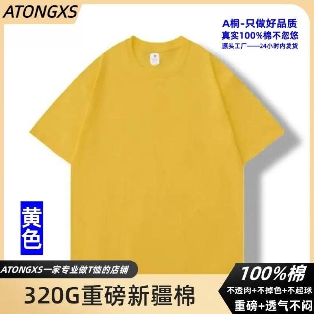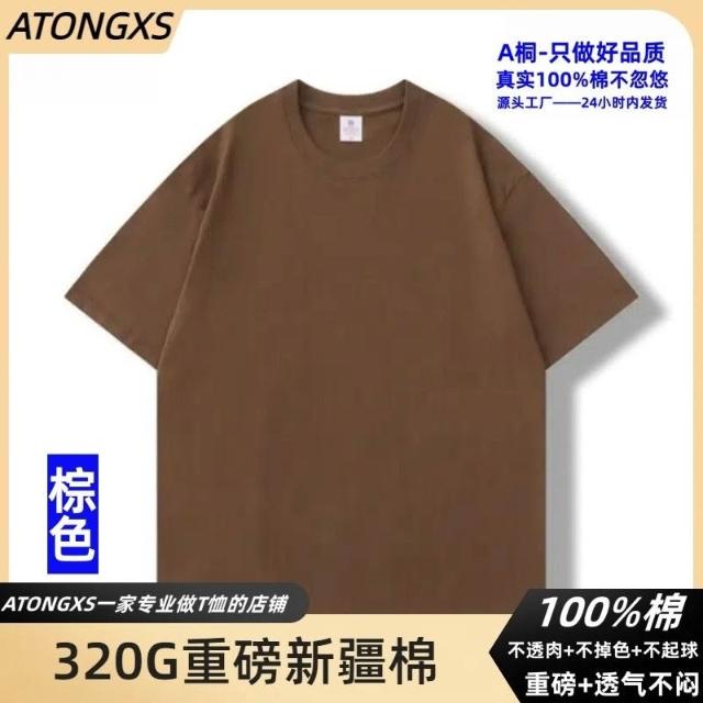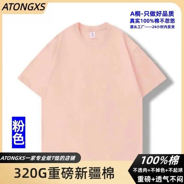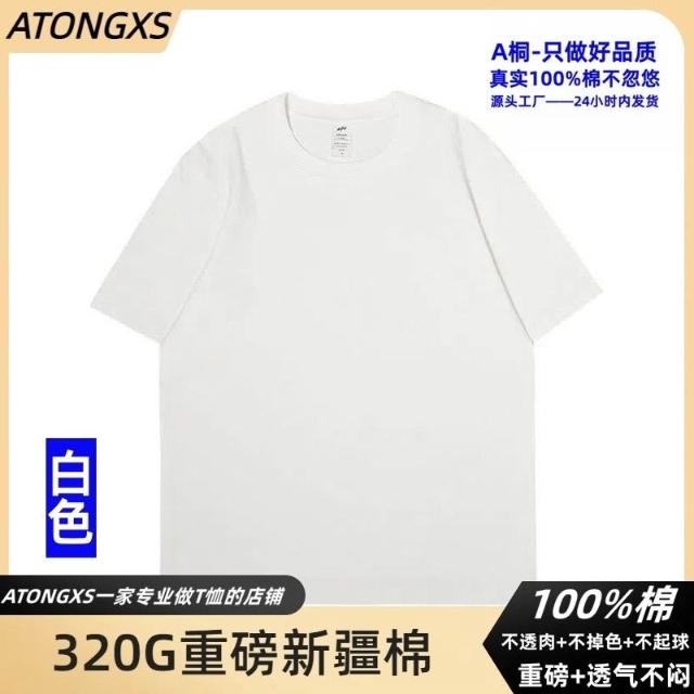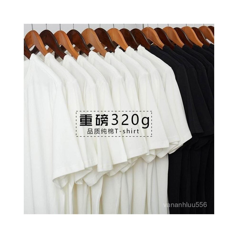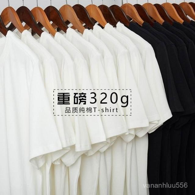 100%棉 日係320G重磅短袖T恤男夏季純棉厚實小領口純白色美式半袖