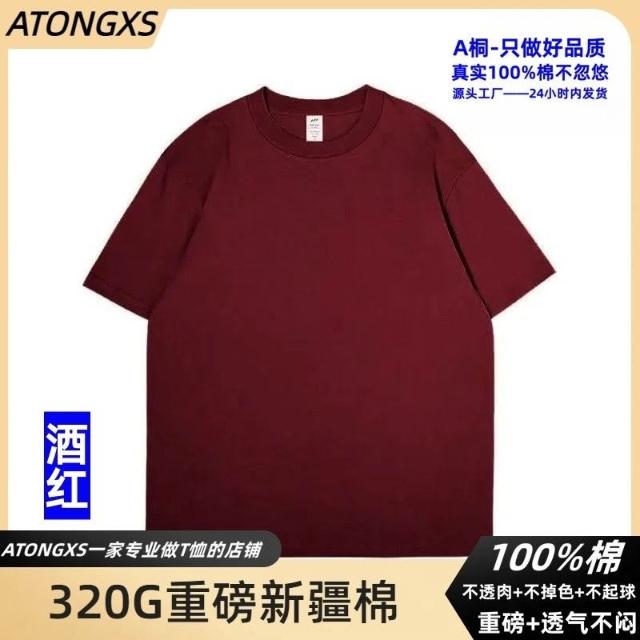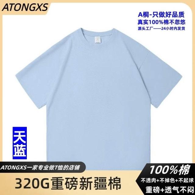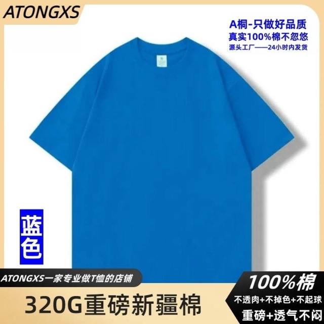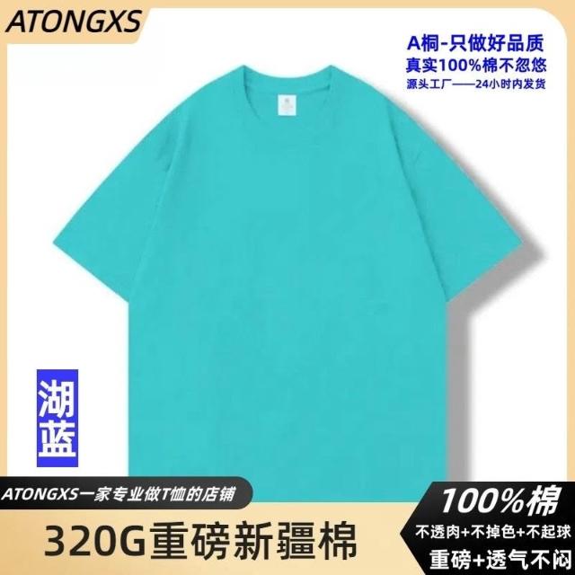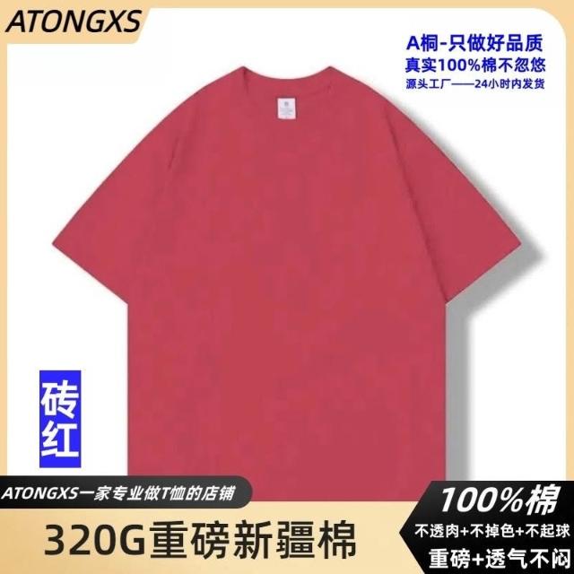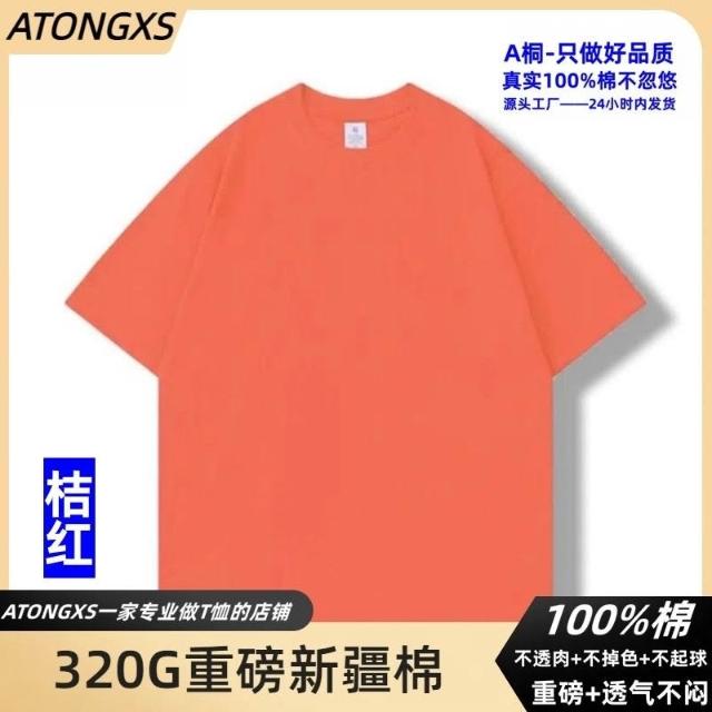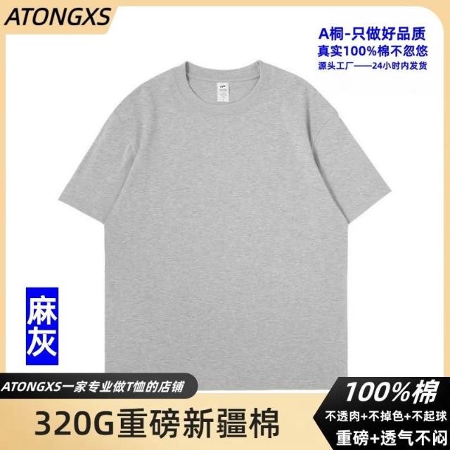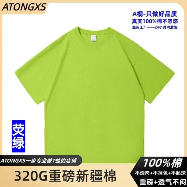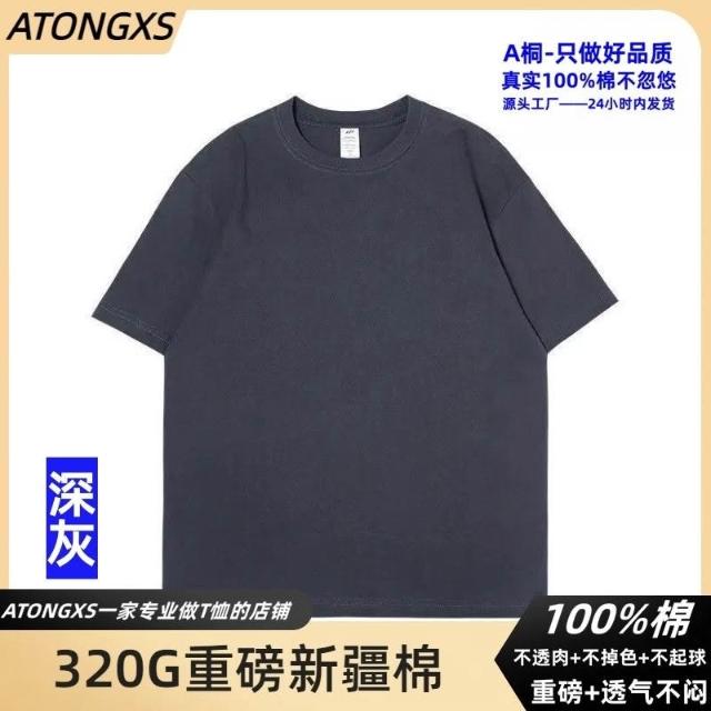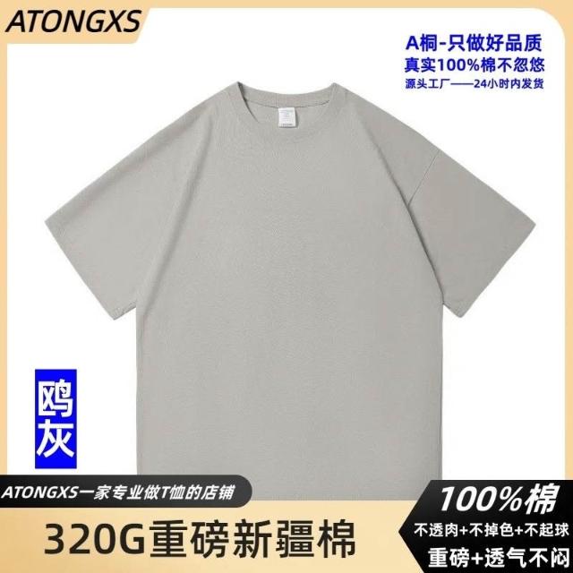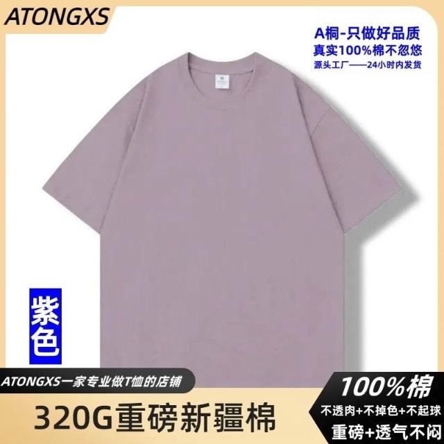 100%棉 日係320G重磅短袖T恤男夏季純棉厚實小領口純白色美式半袖