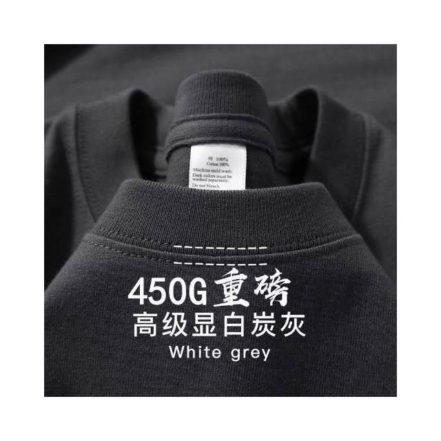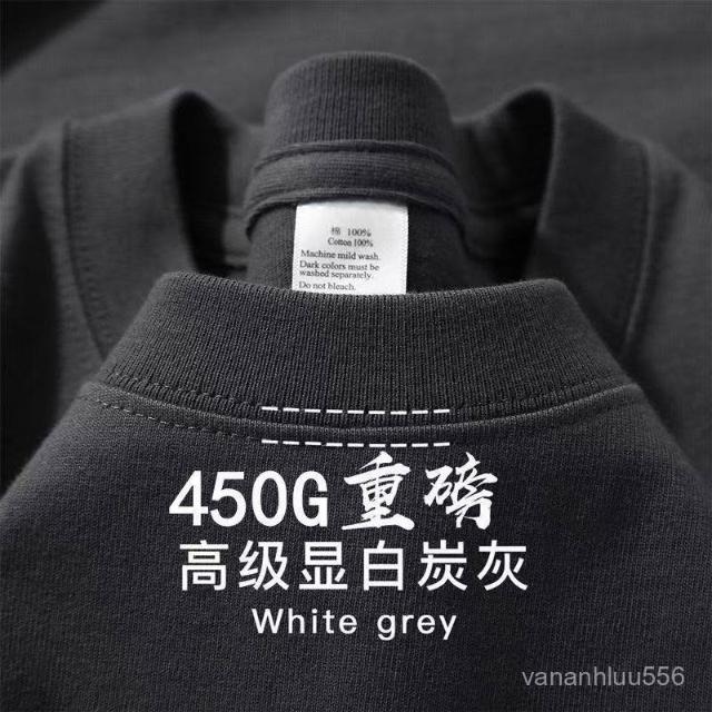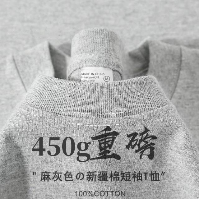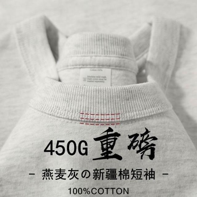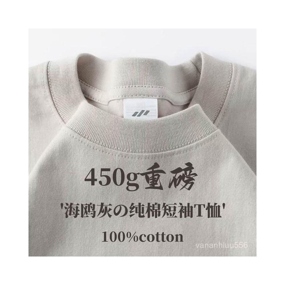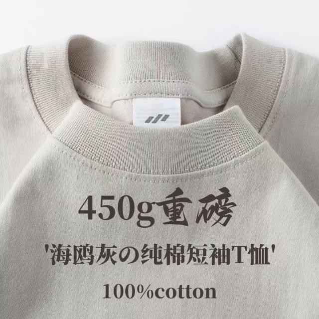 海鷗灰450g重磅純棉短袖日係寬鬆舒適百搭圓領男女衕款半袖T恤夏