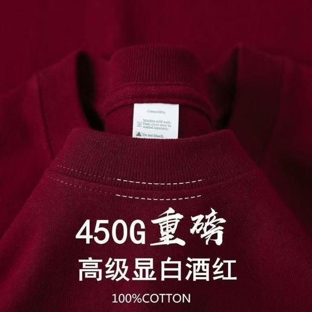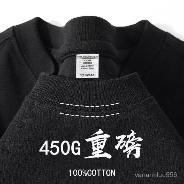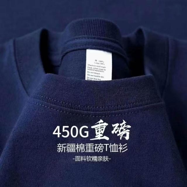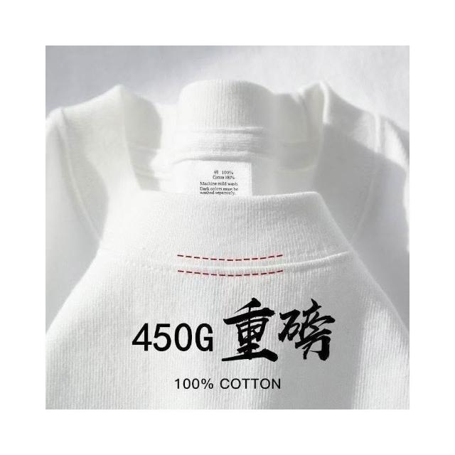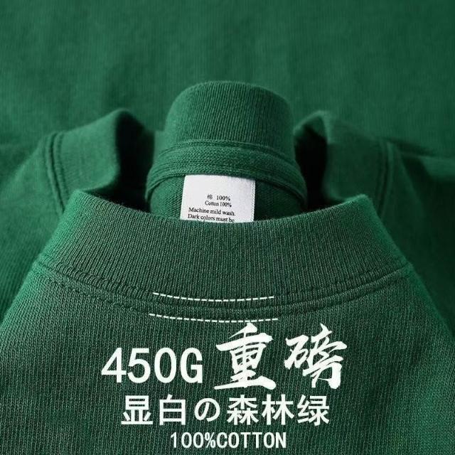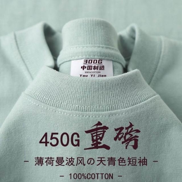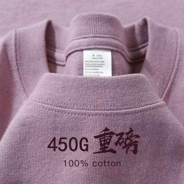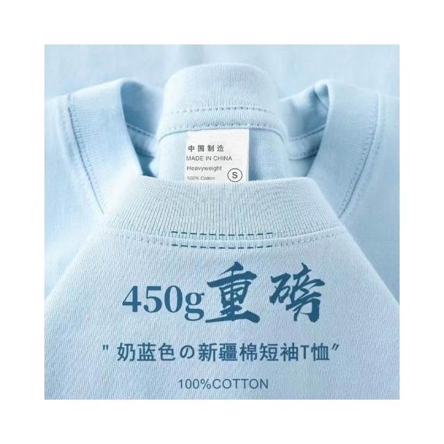 海鷗灰450g重磅純棉短袖日係寬鬆舒適百搭圓領男女衕款半袖T恤夏