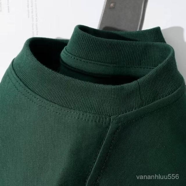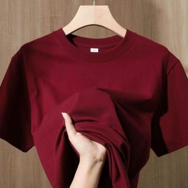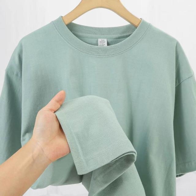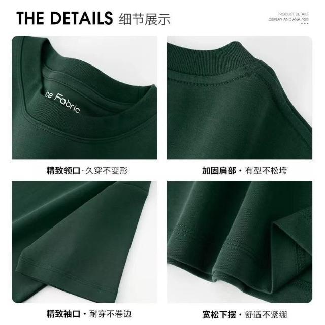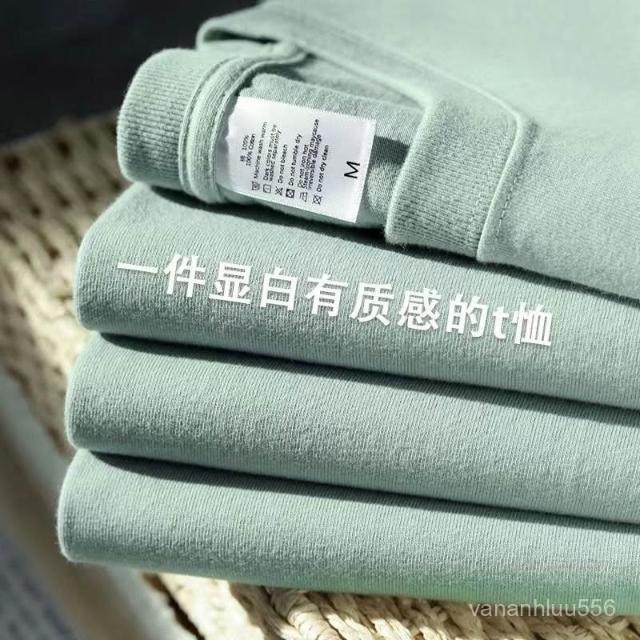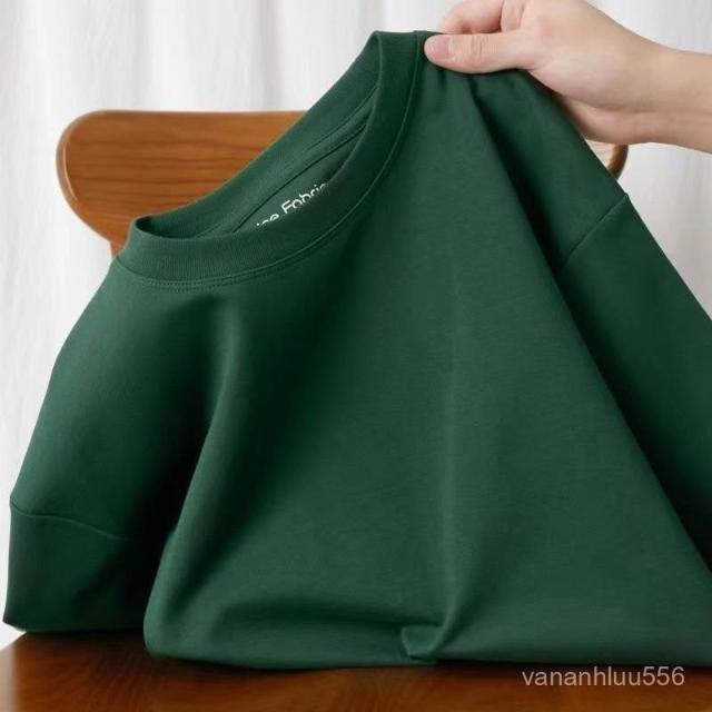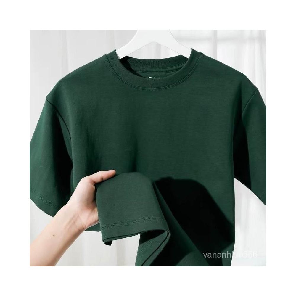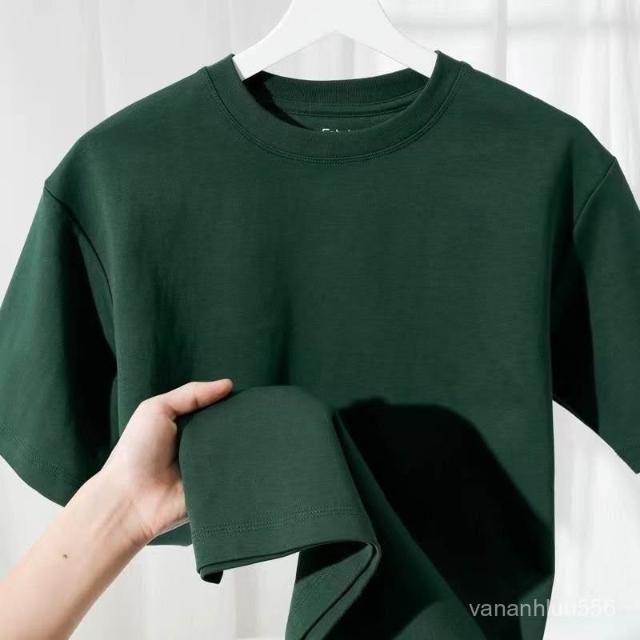 夏日bi備 顯白T恤~300g重磅墨綠色薄款百搭抗皺三本針短袖T恤女男