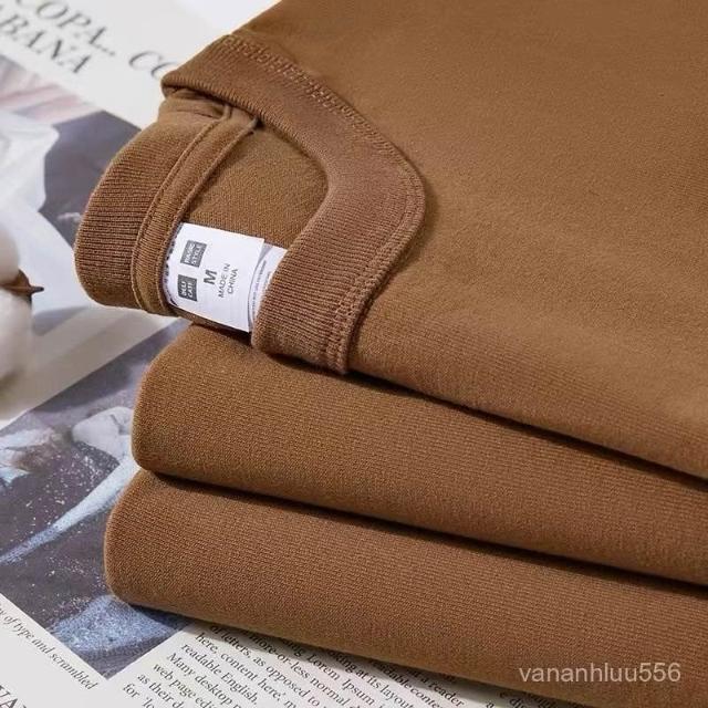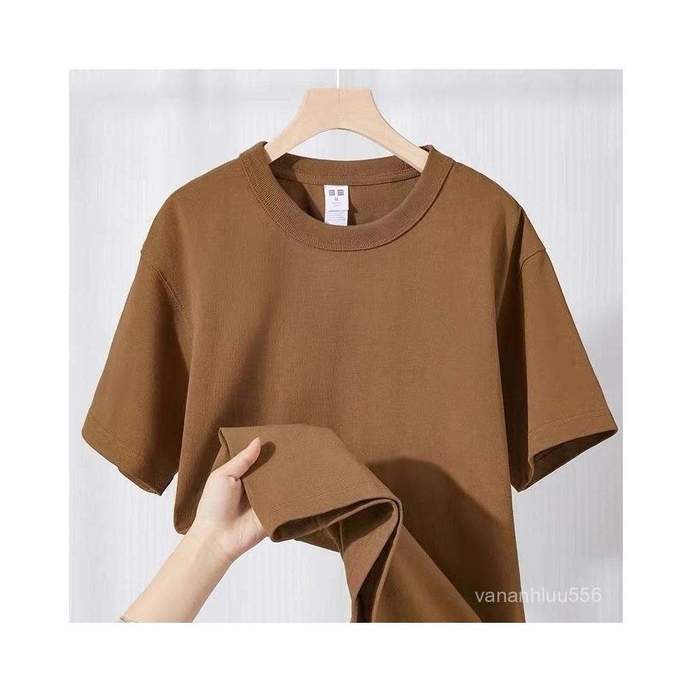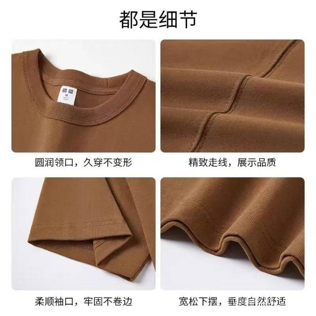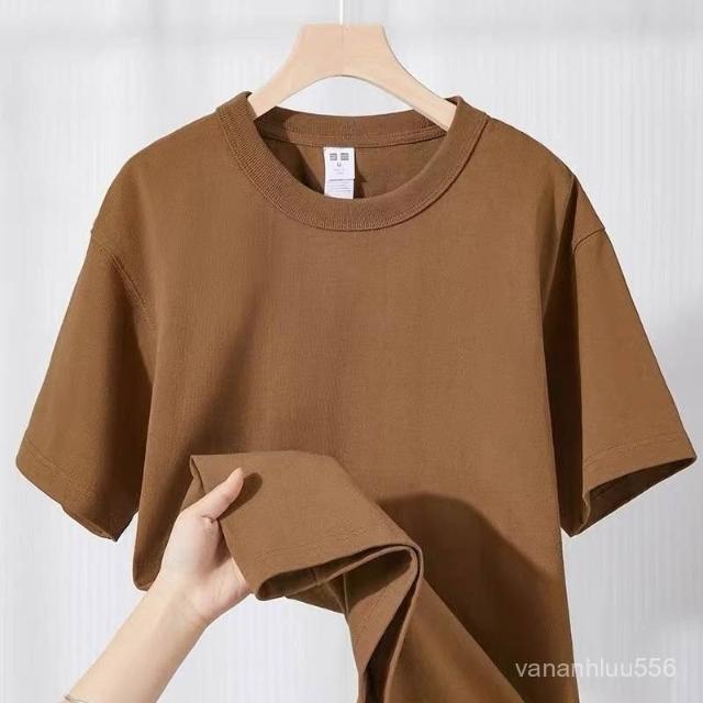 三本針!久洗不變形!咖啡色300g重磅純棉短袖休閒百搭男女T恤夏