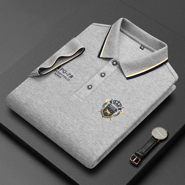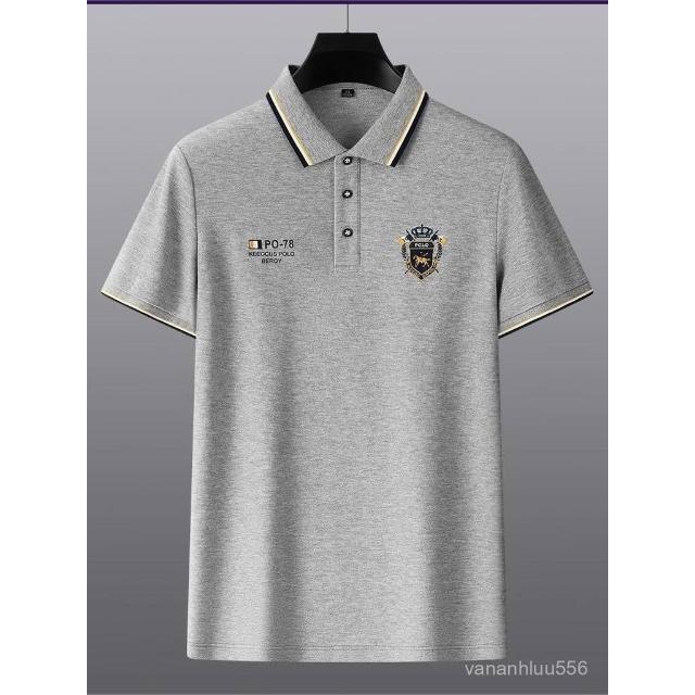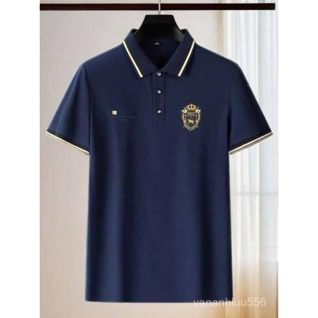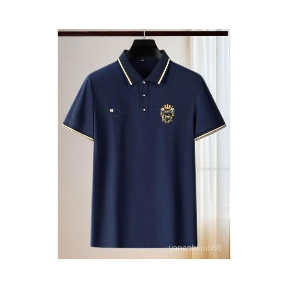 夏季正肩POLO衫男士商務休閒翻領新款短袖刺繡T恤寬鬆高端上衣服
