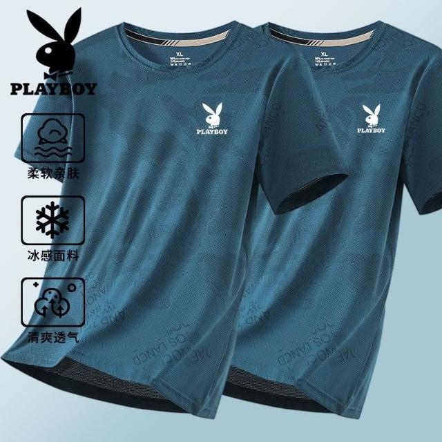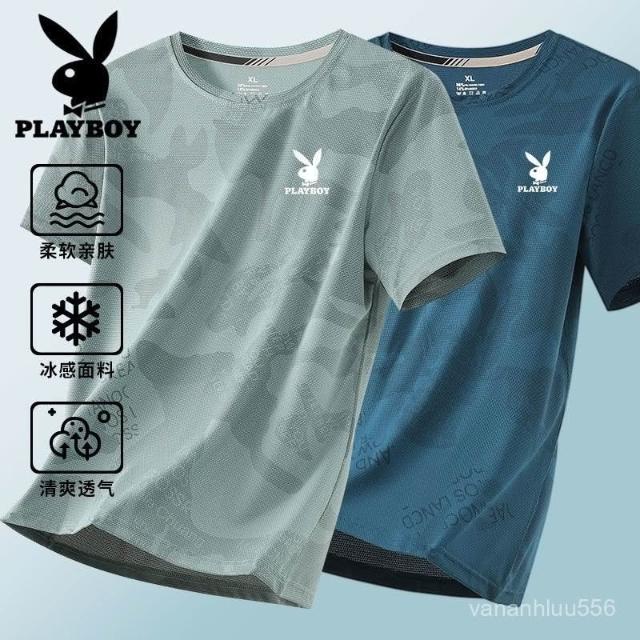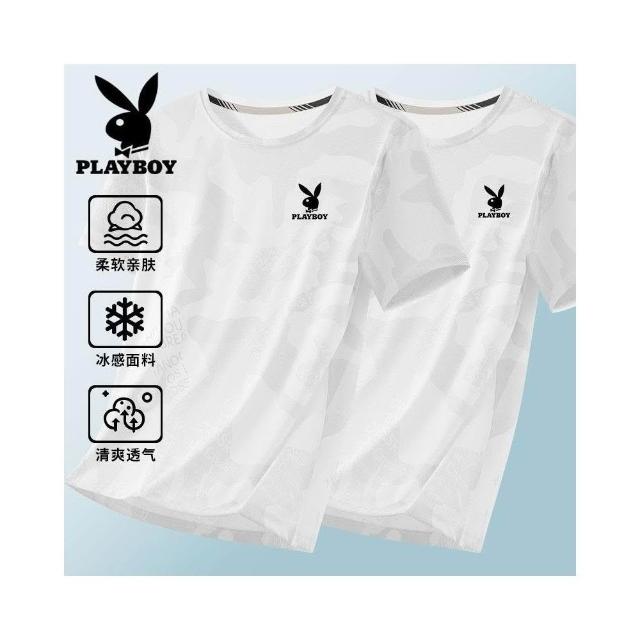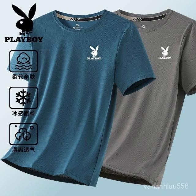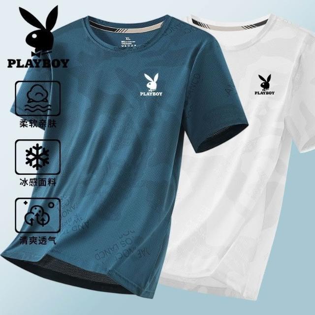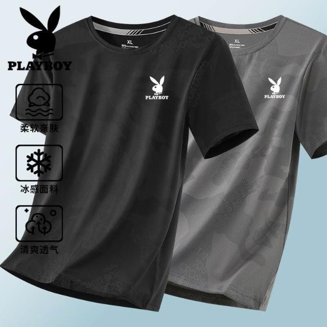 花花公子夏季冰絲短袖T恤男士薄款大碼運動透氣寬鬆休閒速幹上衣
