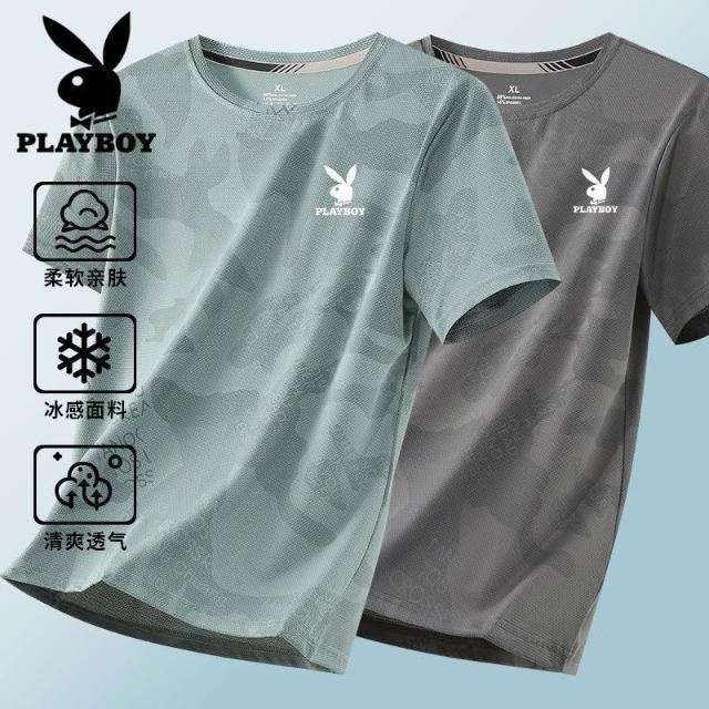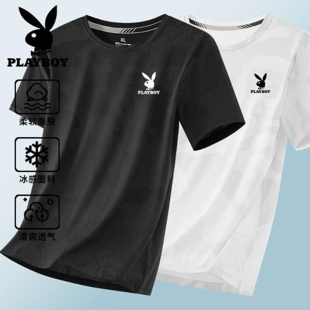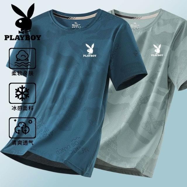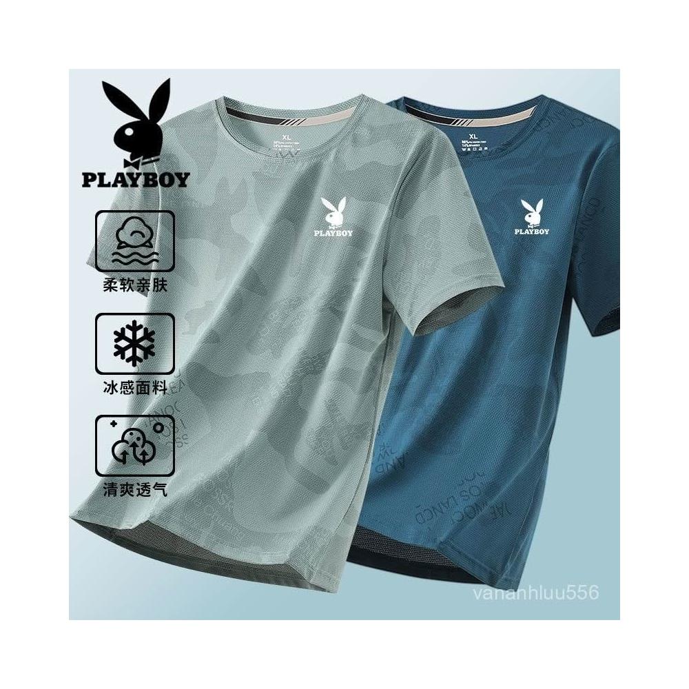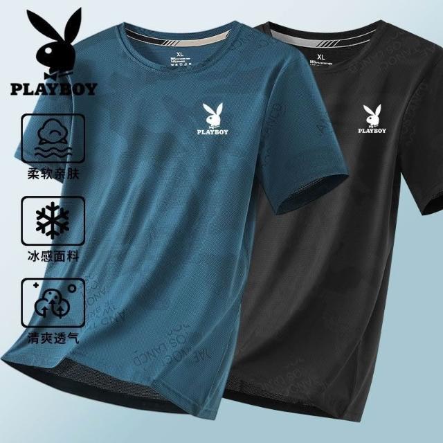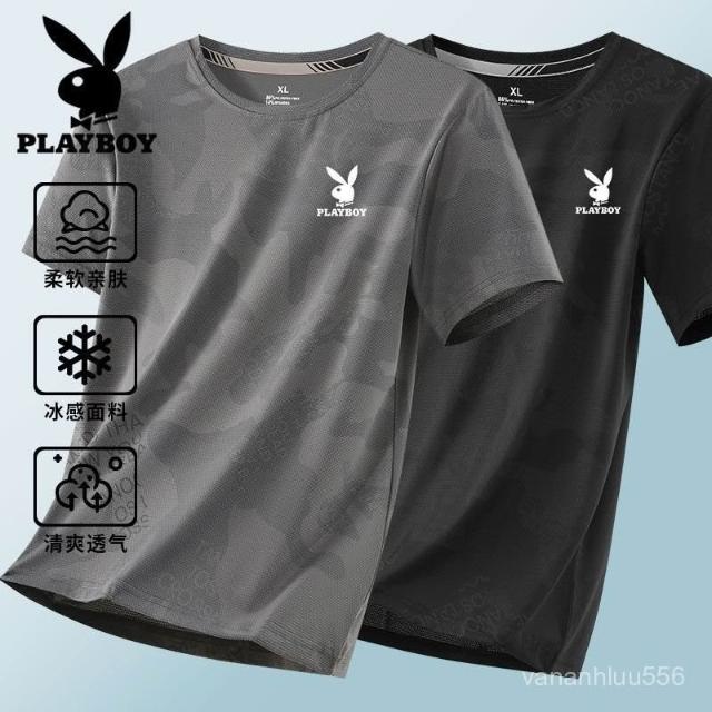 花花公子夏季冰絲短袖T恤男士薄款大碼運動透氣寬鬆休閒速幹上衣