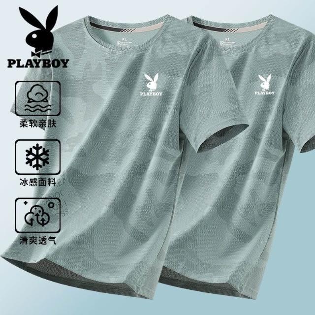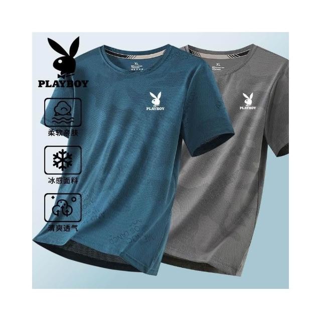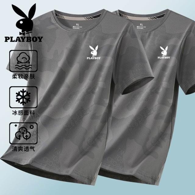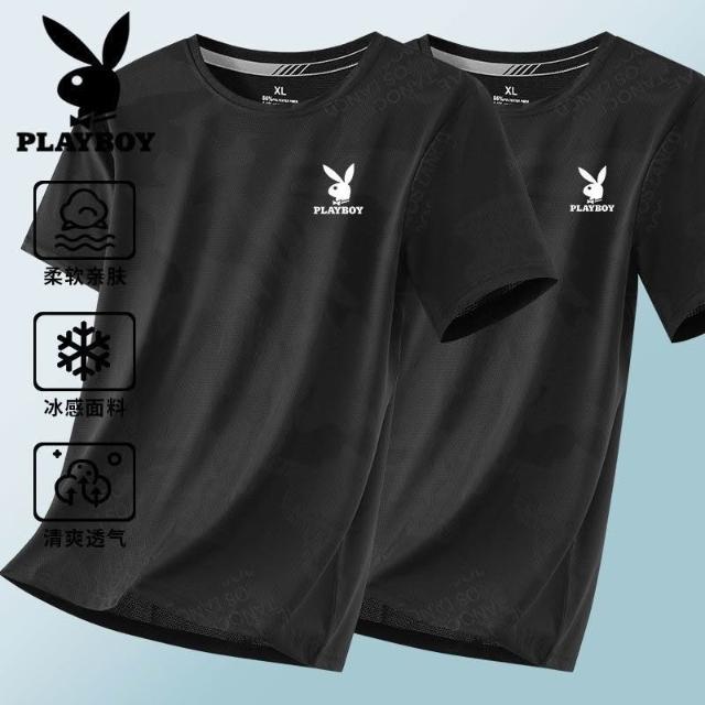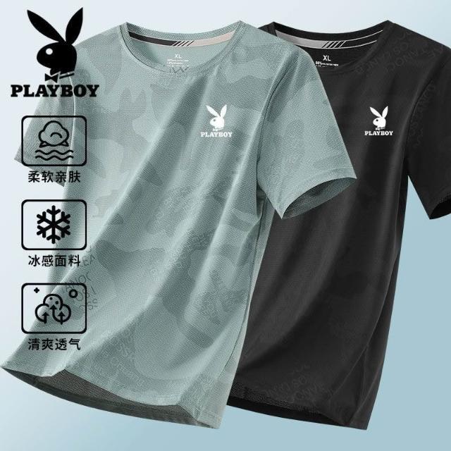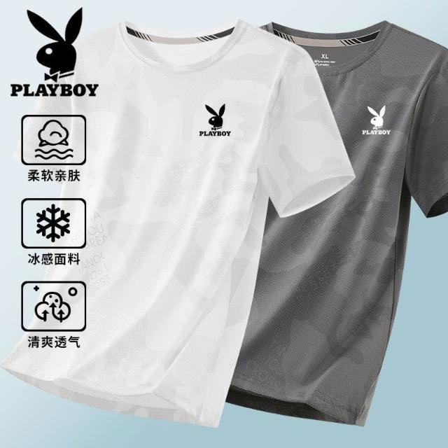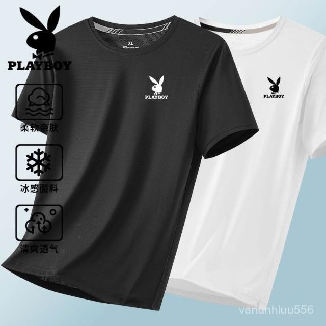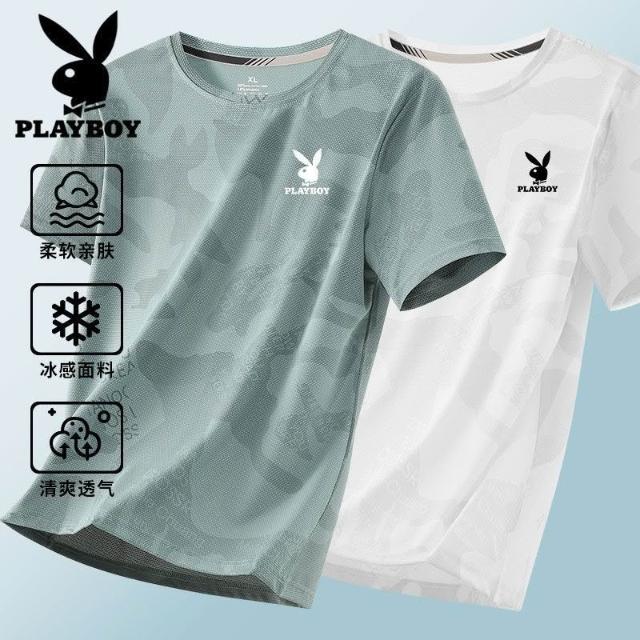 花花公子夏季冰絲短袖T恤男士薄款大碼運動透氣寬鬆休閒速幹上衣