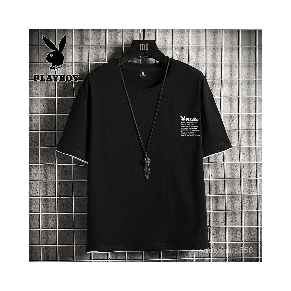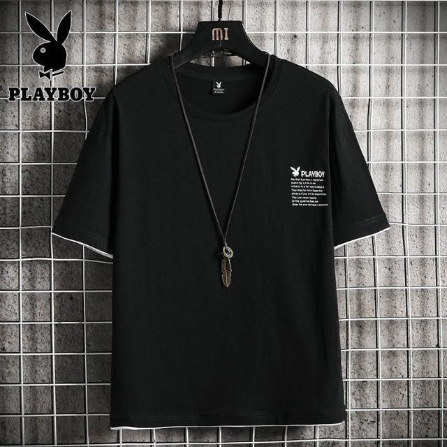 花花公子新款短袖大碼T恤夏季男士半袖時尚打底體恤圓領寬鬆上衣