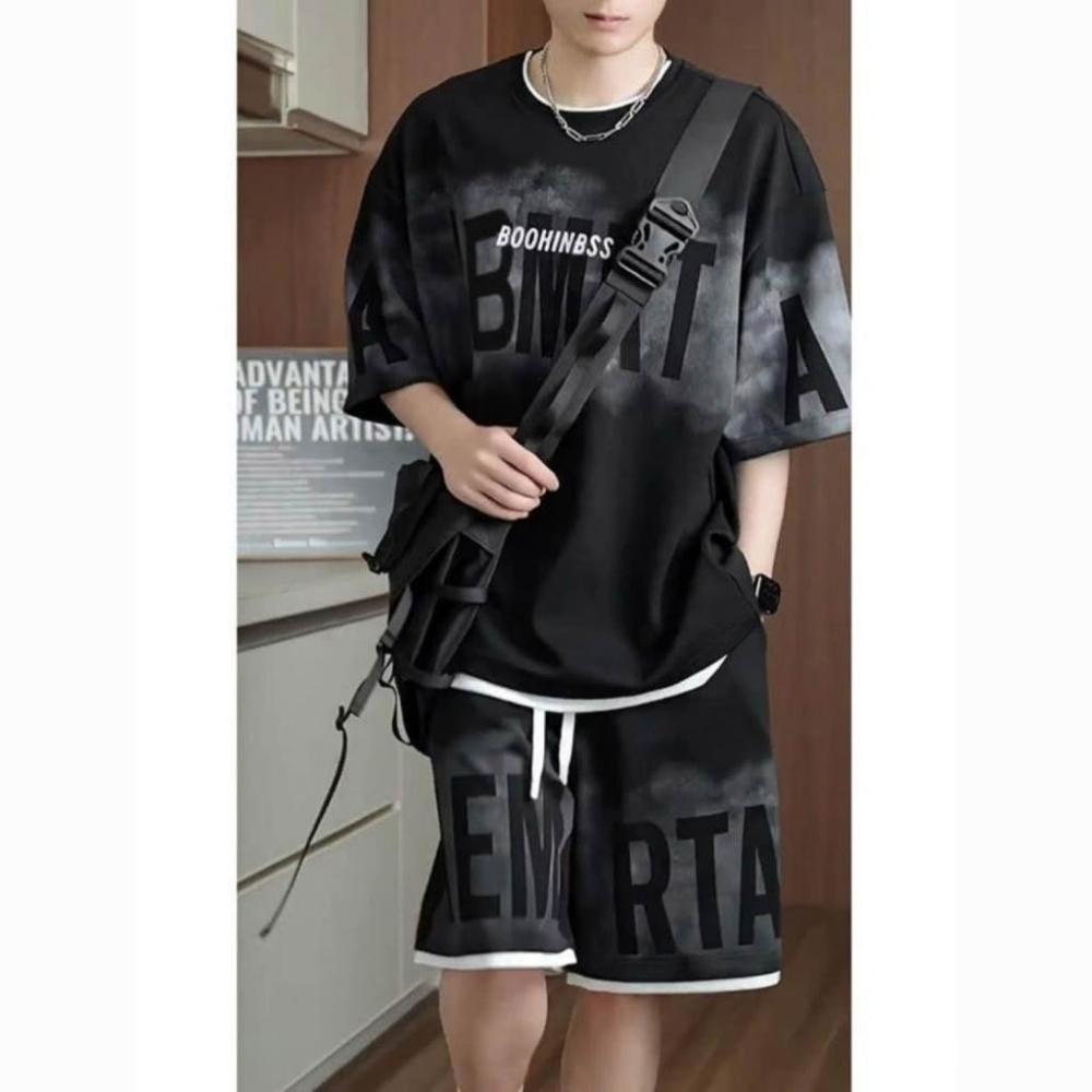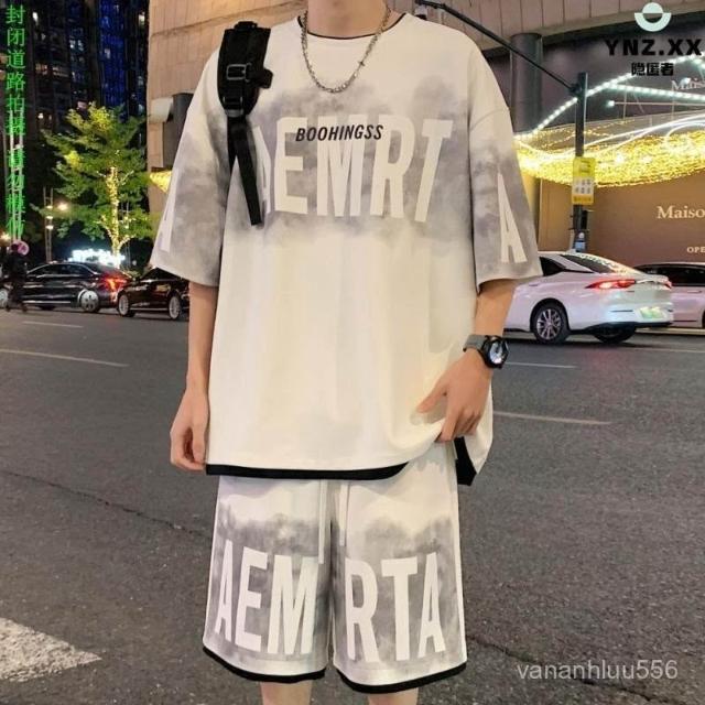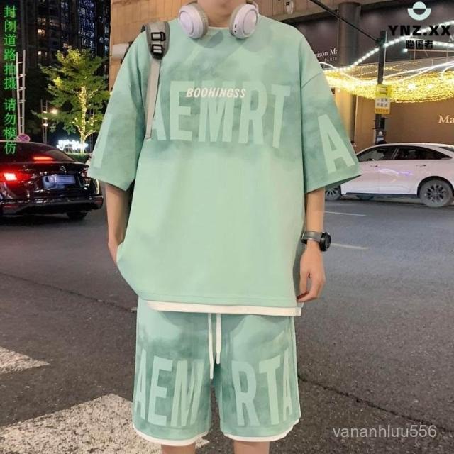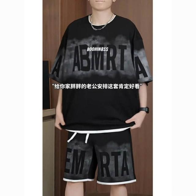 特大碼300斤套裝短袖T恤男夏季假兩件美式複古潮牌大碼半袖體恤