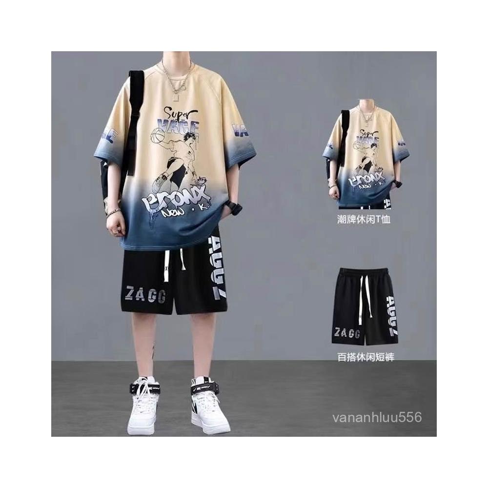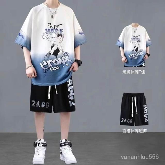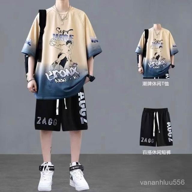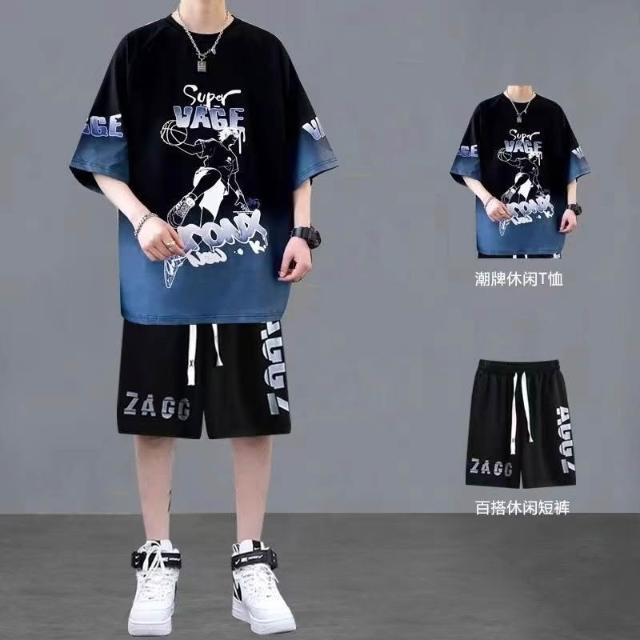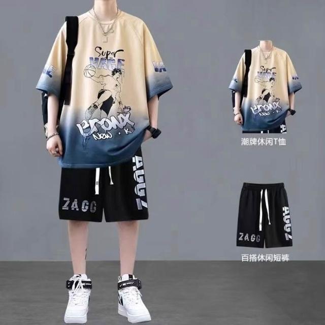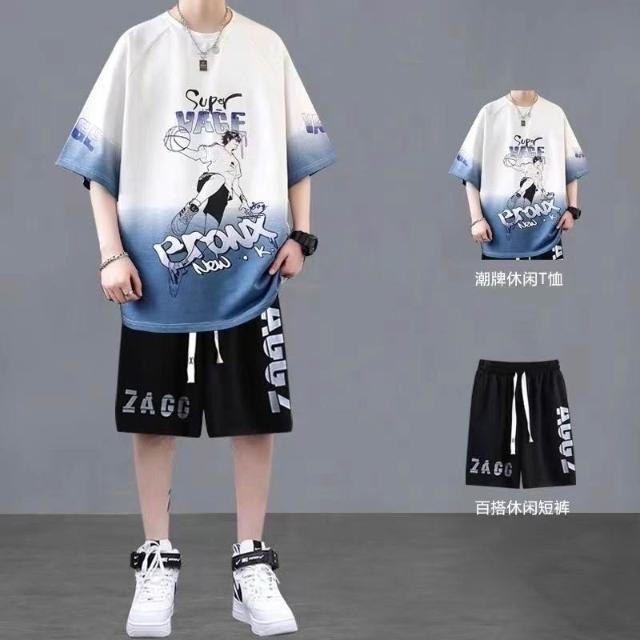 青少年運動套裝男裝夏季新款T恤男孩潮帥氣時髦短袖短褲