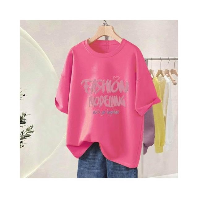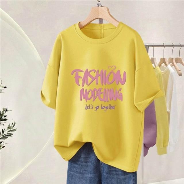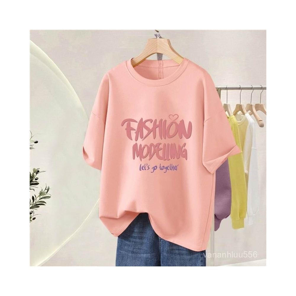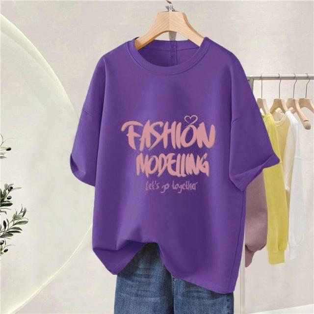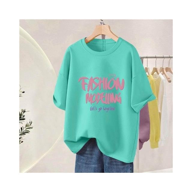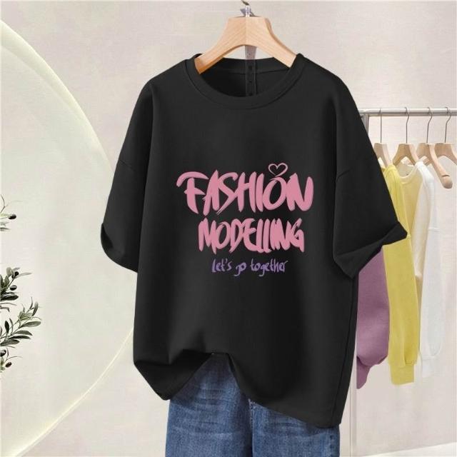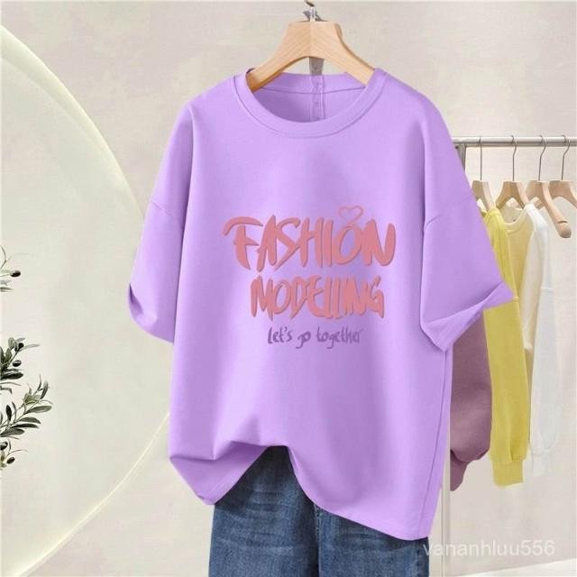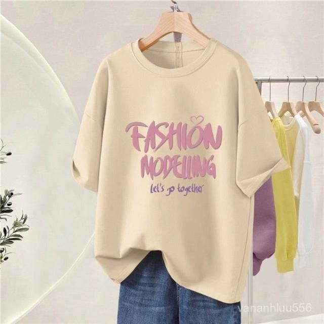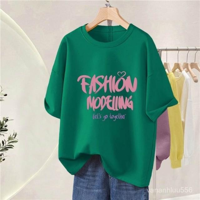 夏季短袖T恤純棉200斤大碼寬鬆印花中長款女士百搭上衣新品體恤女
