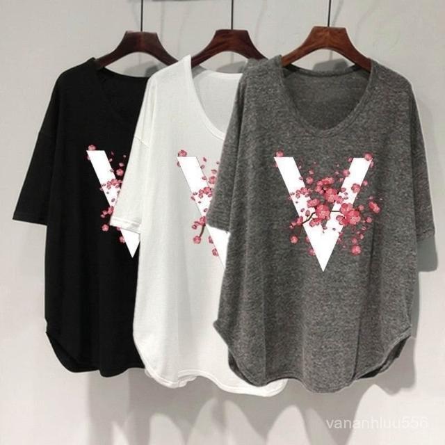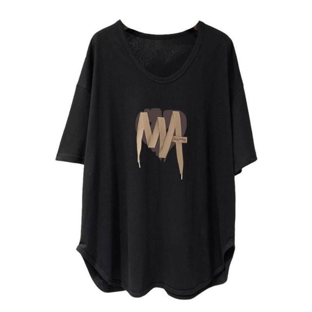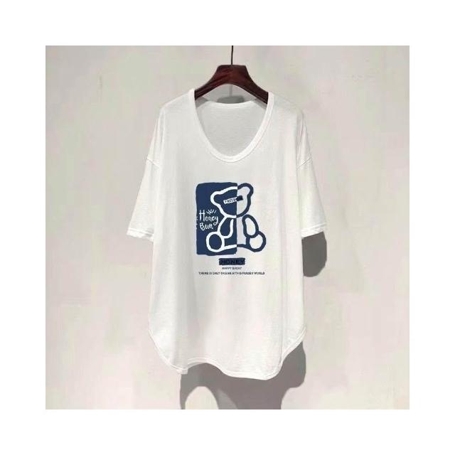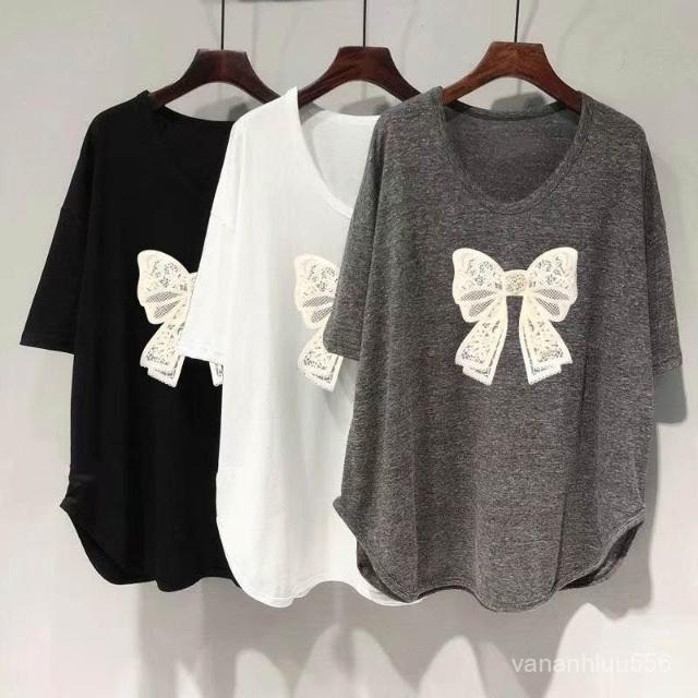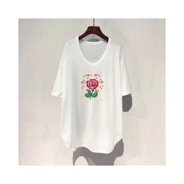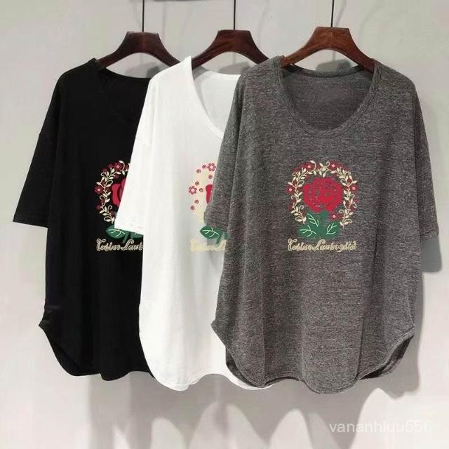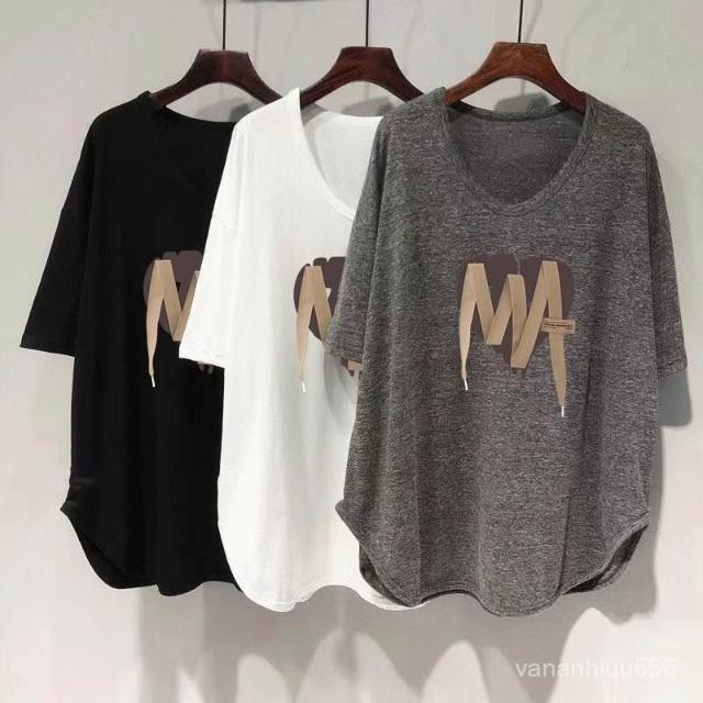 胖mm300斤夏季新款短袖T恤女寬鬆大碼中長款U領韓版顯瘦遮肚上衣