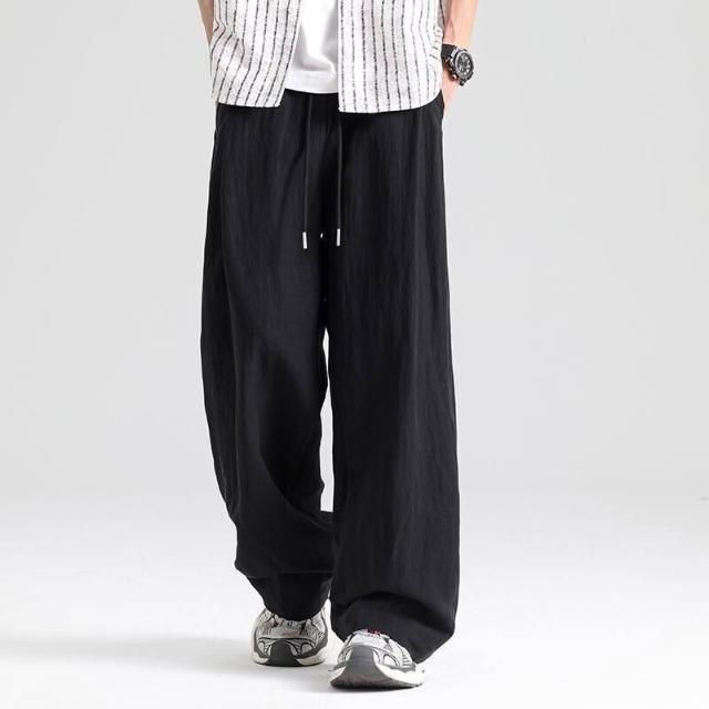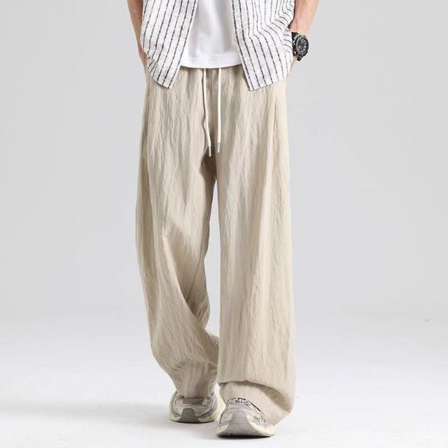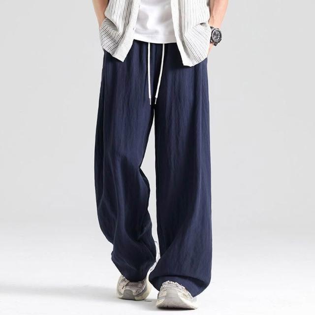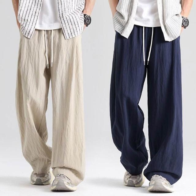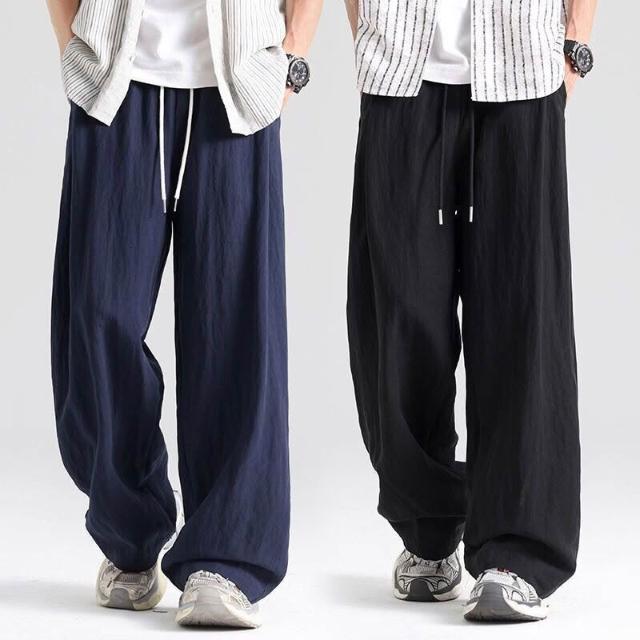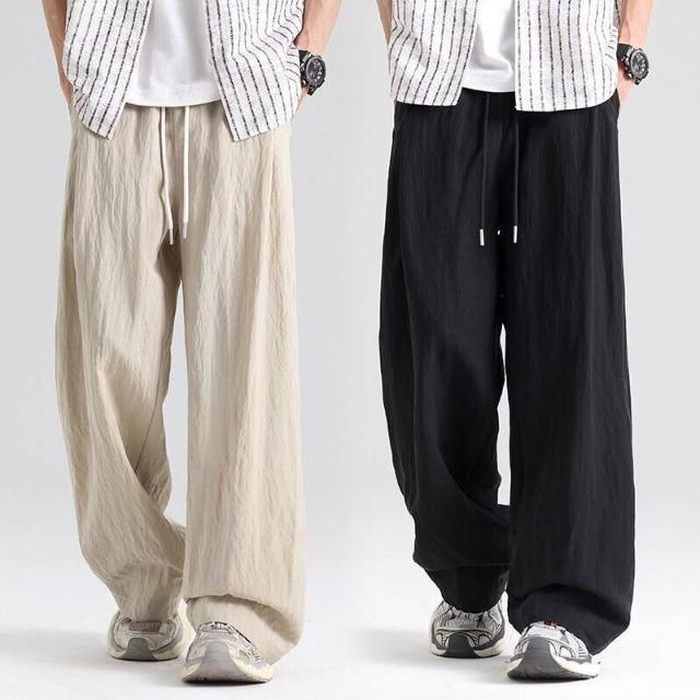 天丝亚麻裤子男款夏季薄款垂感直筒裤男士莱赛尔休闲阔腿运动卫裤