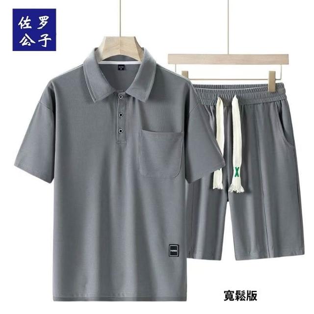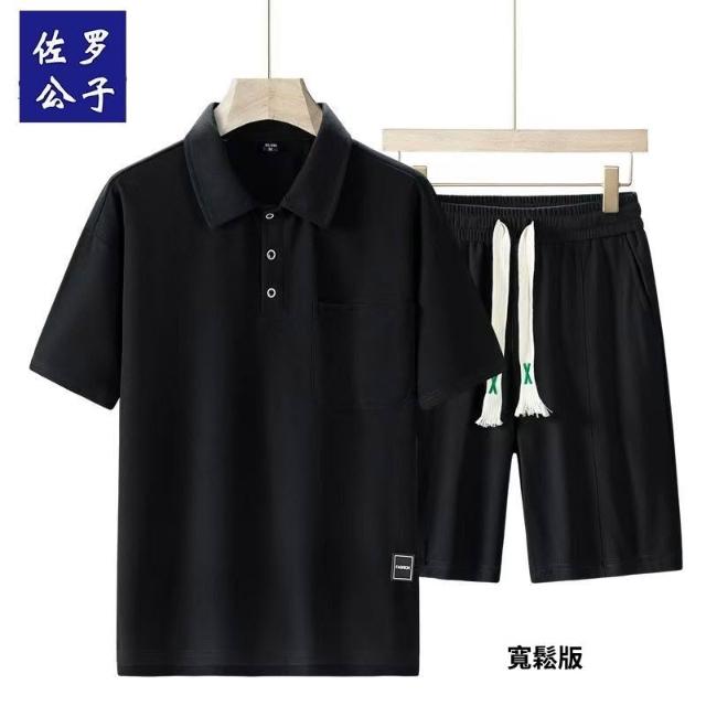 高品質中年男士潮牌POLO衫休閒套裝夏季新款寬鬆版短袖短褲兩件套