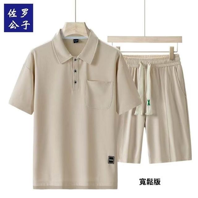 高品質中年男士潮牌POLO衫休閒套裝夏季新款寬鬆版短袖短褲兩件套