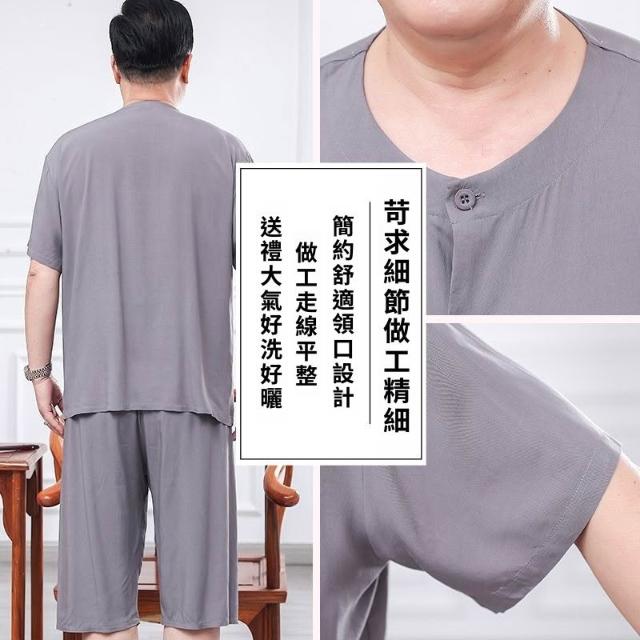 中老年人夏裝短袖套裝男爺爺襯衫兩件套爸爸寬鬆綿綢老人薄款衣服