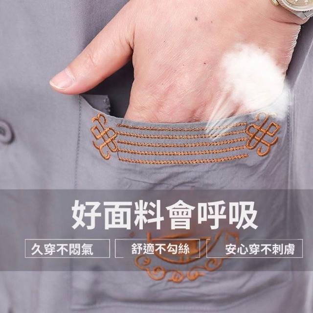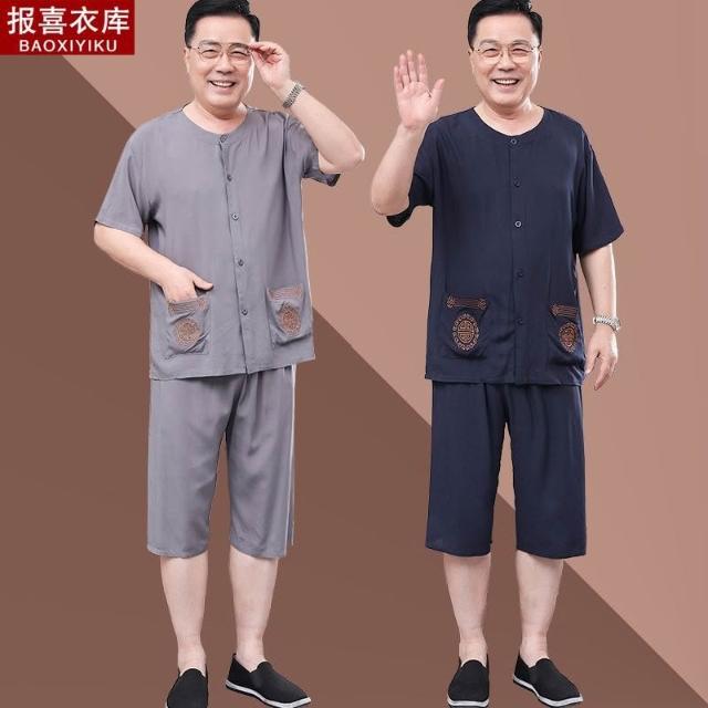 中老年人夏裝短袖套裝男爺爺襯衫兩件套爸爸寬鬆綿綢老人薄款衣服