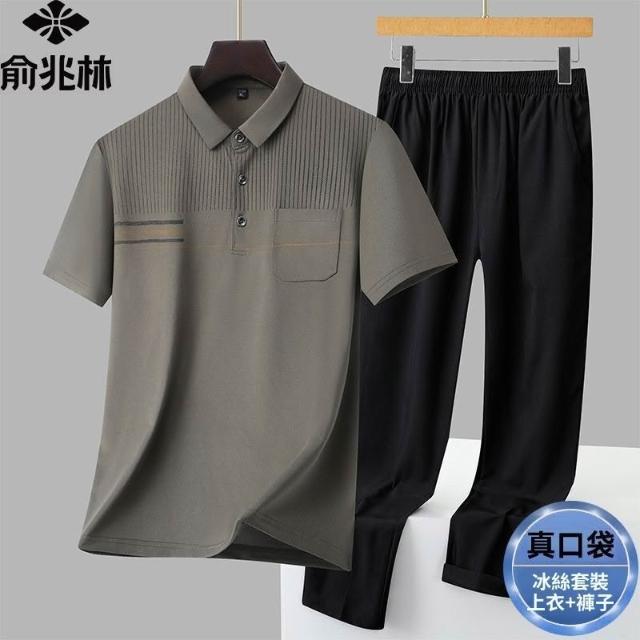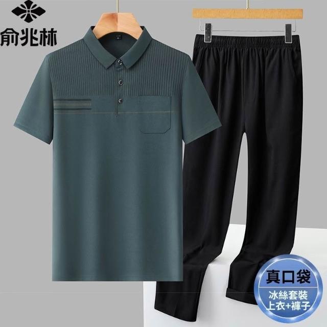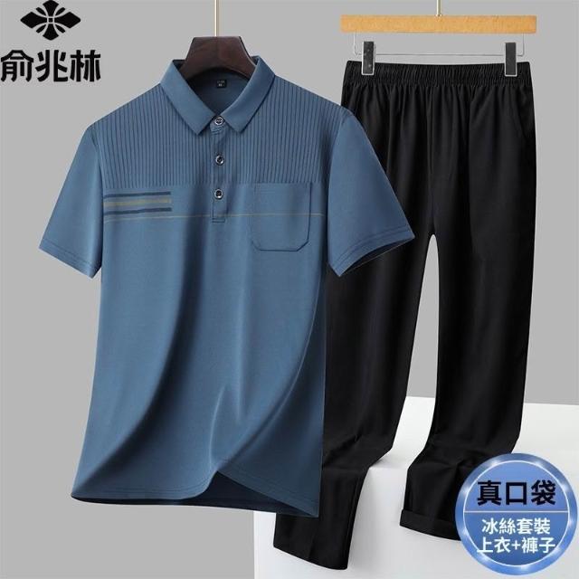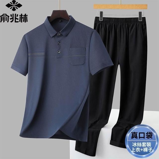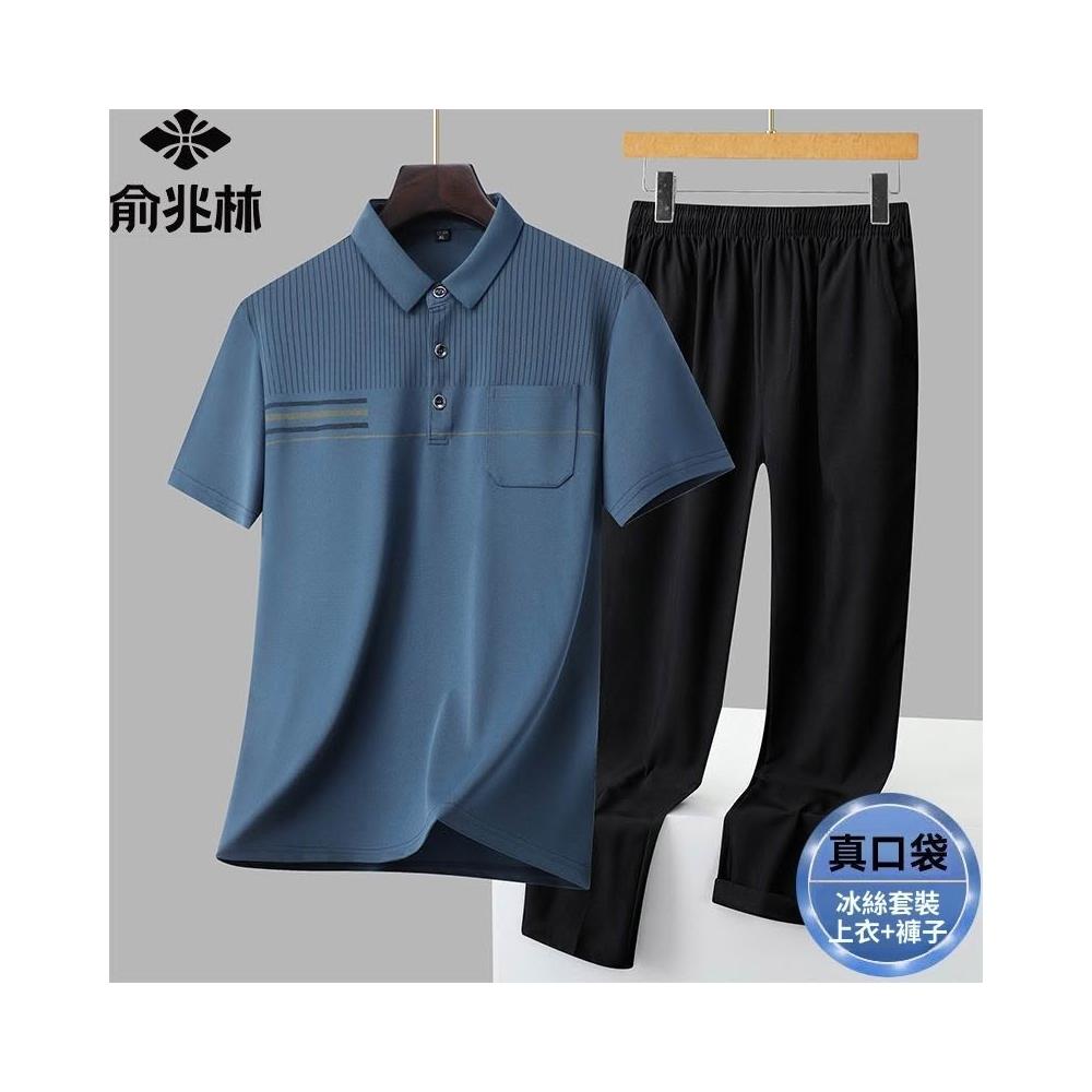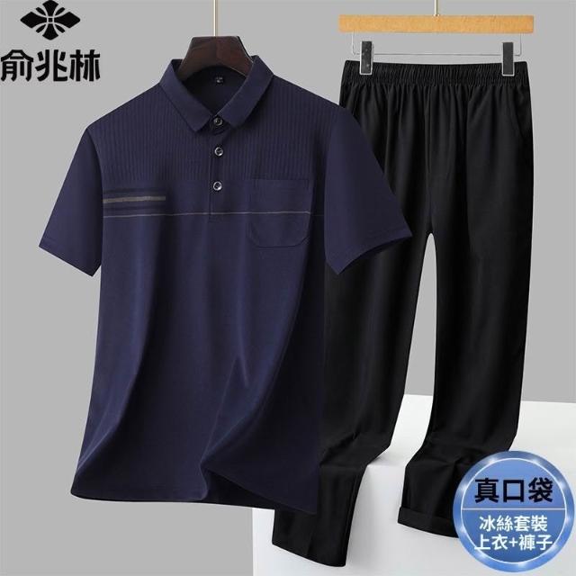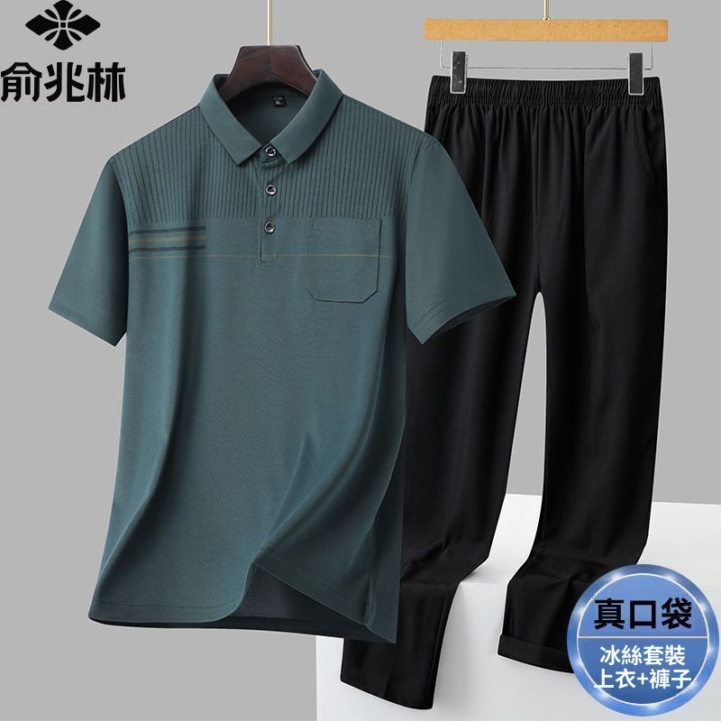 俞兆林男士商務休閒冰絲套裝薄款速乾透氣爸爸裝POLO衫長褲兩件套