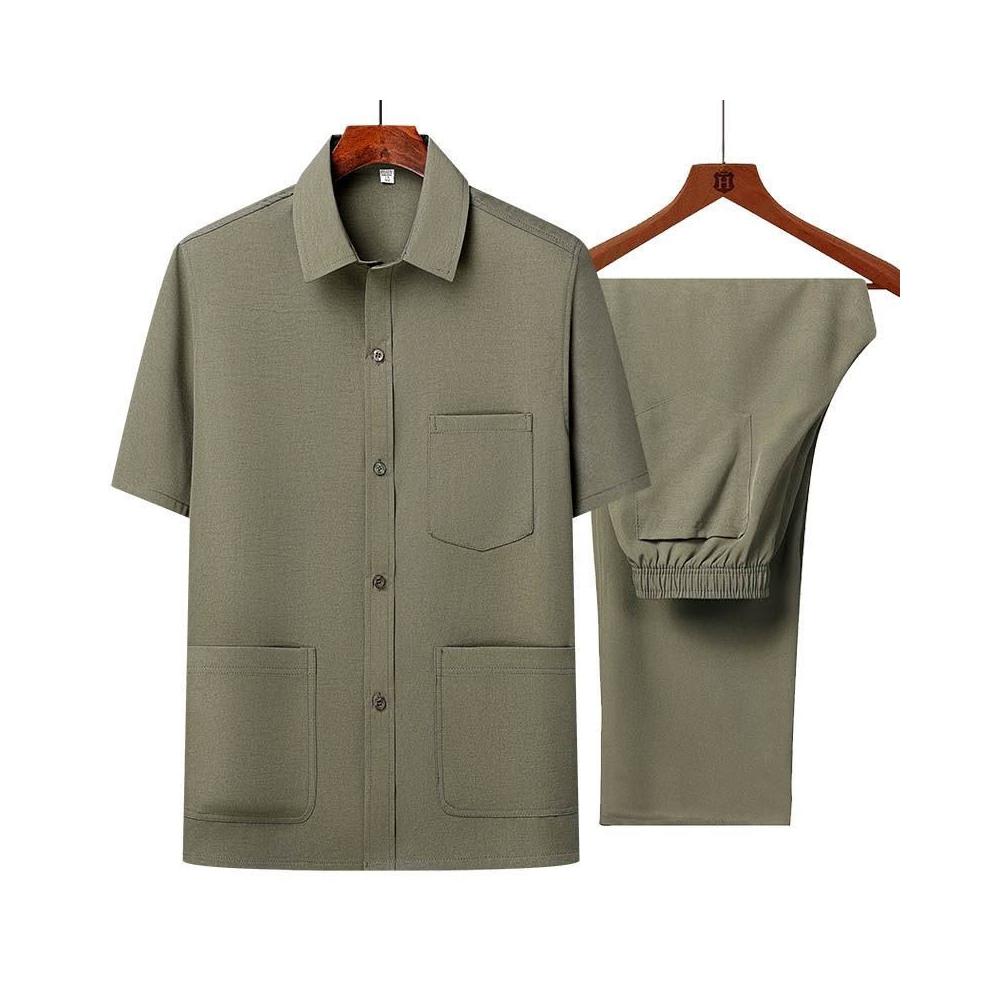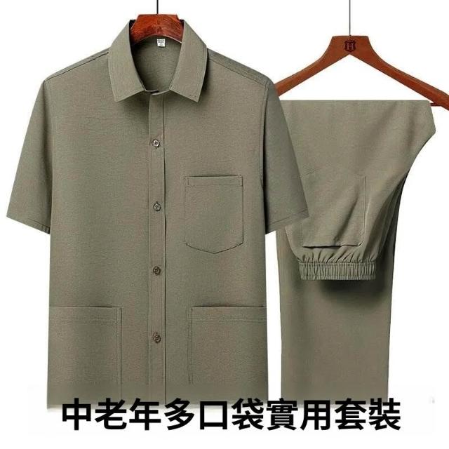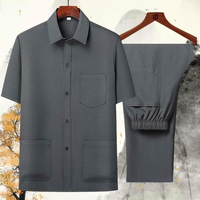 唐裝男中老年短袖爸爸冰絲套裝夏薄老人衣服男裝國風漢服爺爺裝