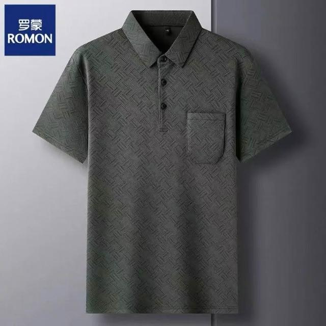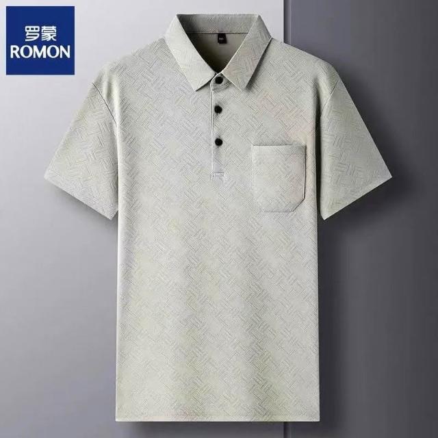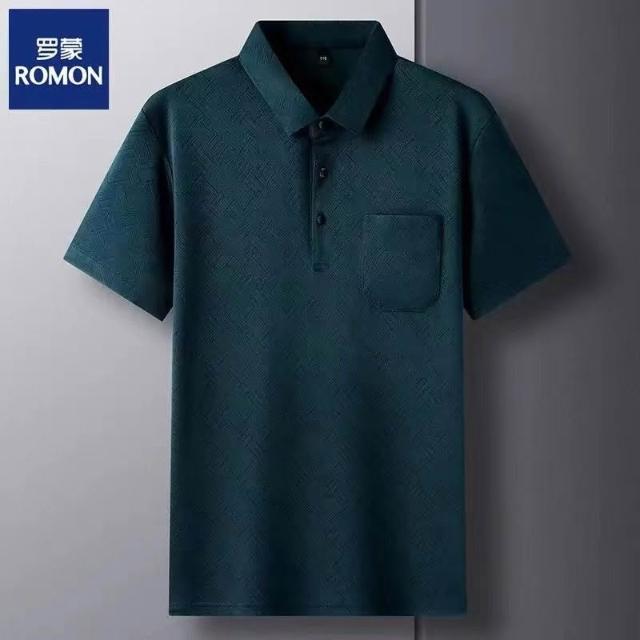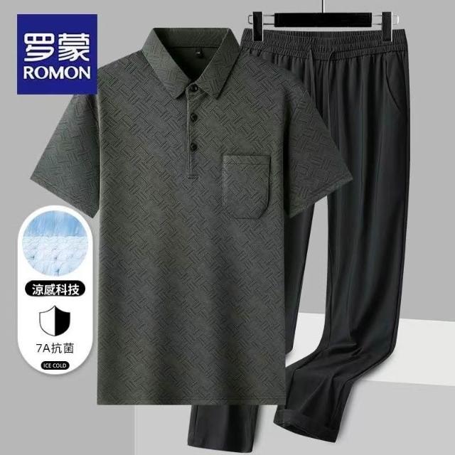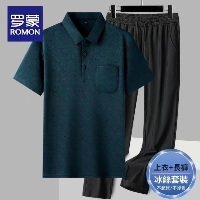 羅蒙套裝男士冰絲夏季POLO短袖休閒中老年中年爸爸夏裝兩件套長褲