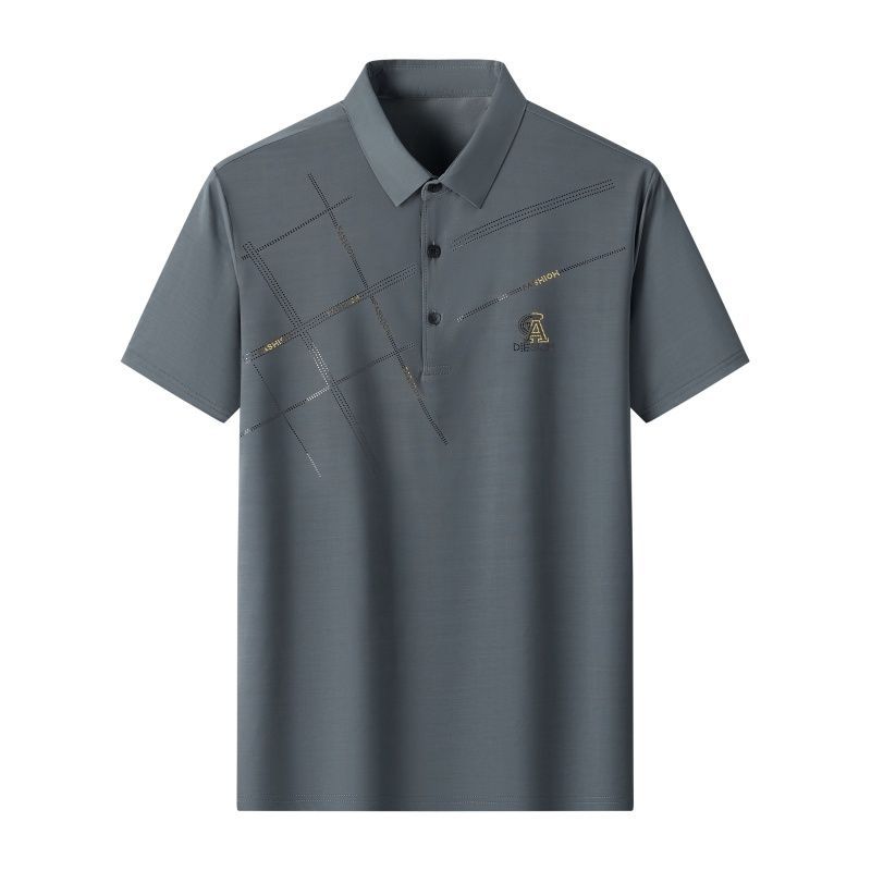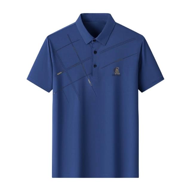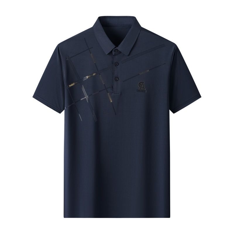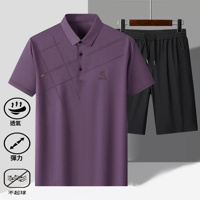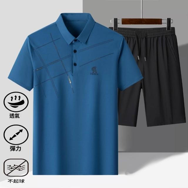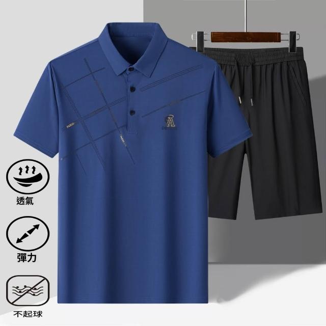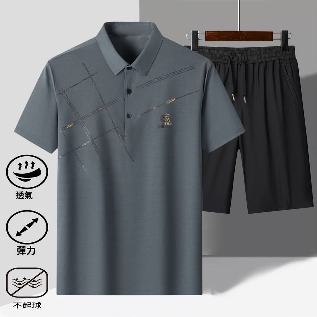 高檔夏季冰絲新款POLO衫休閒套裝男中老年爸爸夏裝短袖短褲二件套