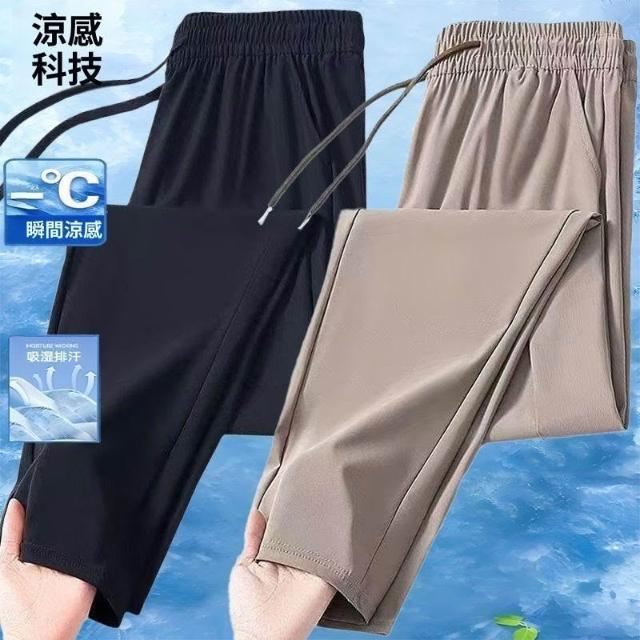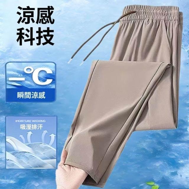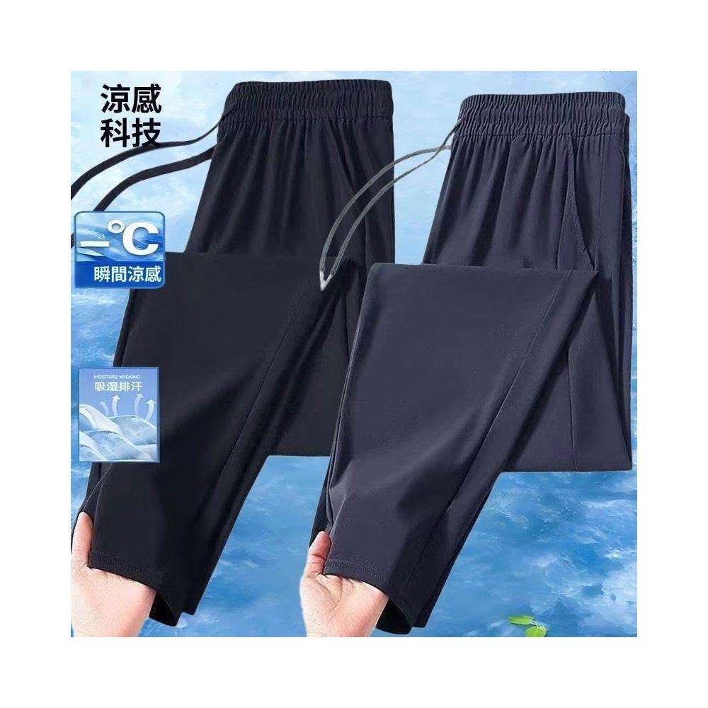 男直筒休閒褲2026春夏新款透氣薄款冰絲涼感速幹鬆緊腰長褲空調褲