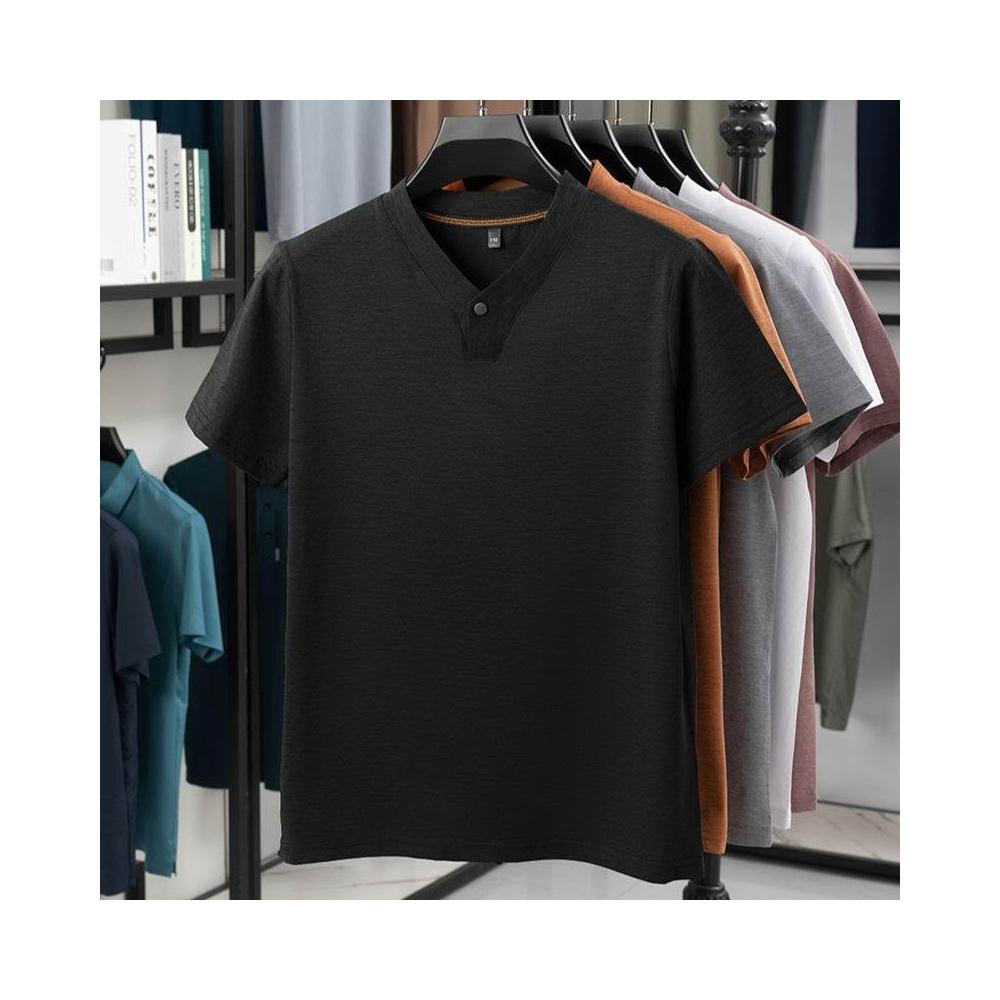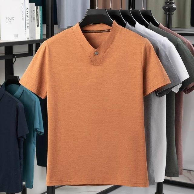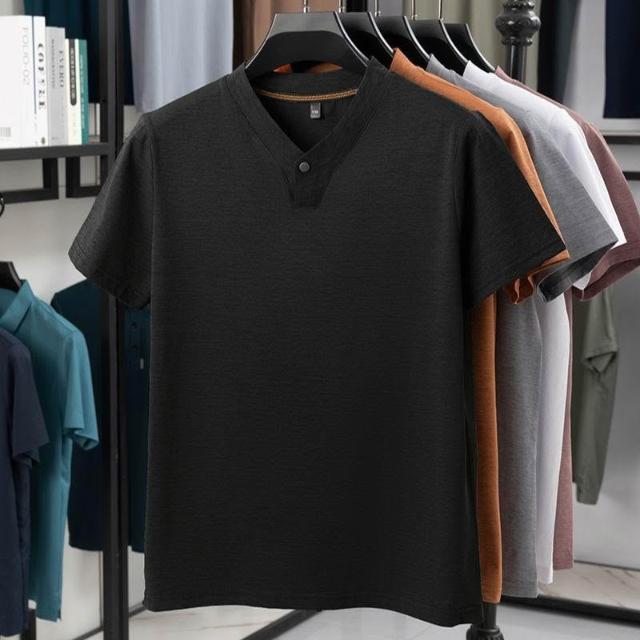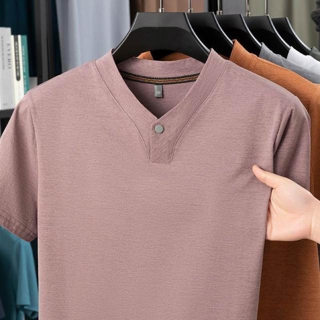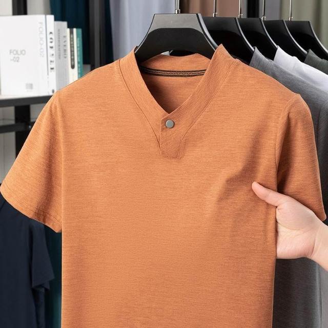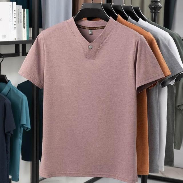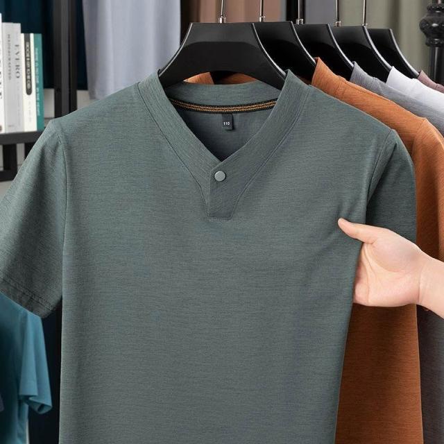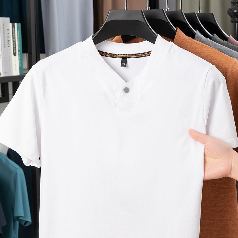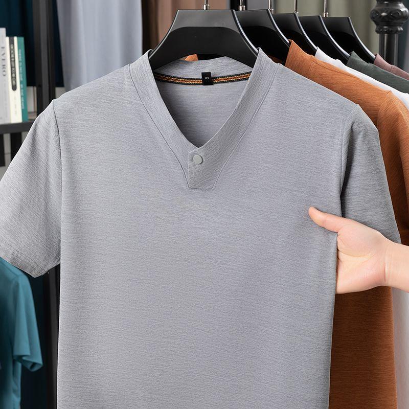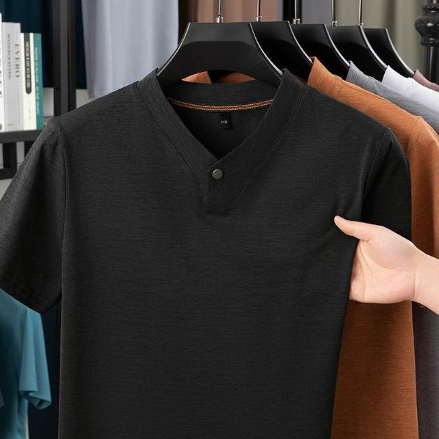 2026夏季新款男士純色速幹V領短袖T恤半袖休閒潮流打底衫