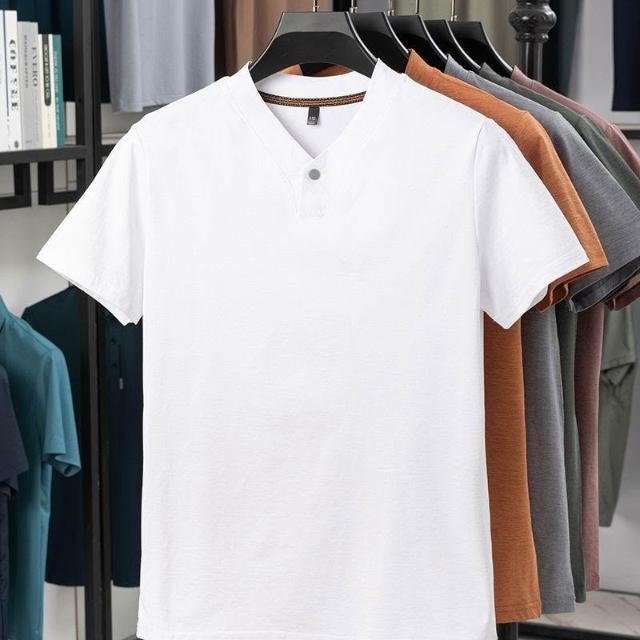 2026夏季新款男士純色速幹V領短袖T恤半袖休閒潮流打底衫