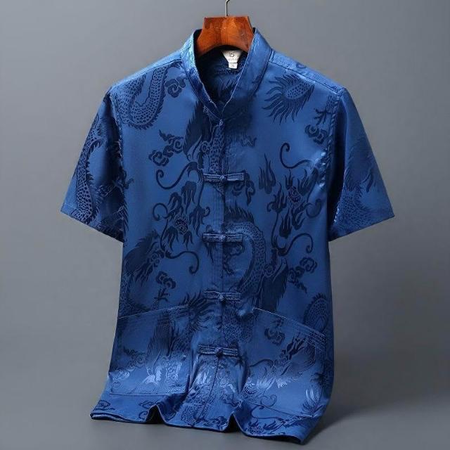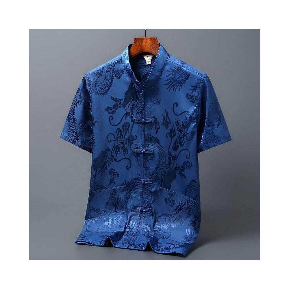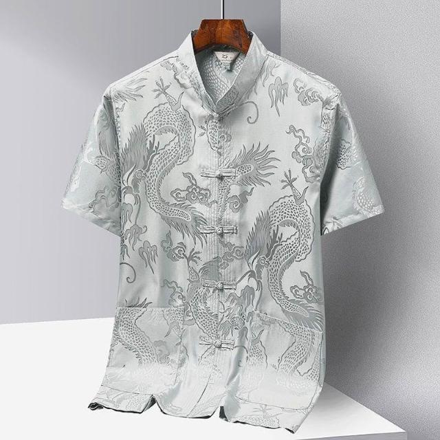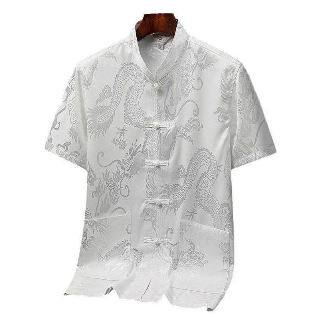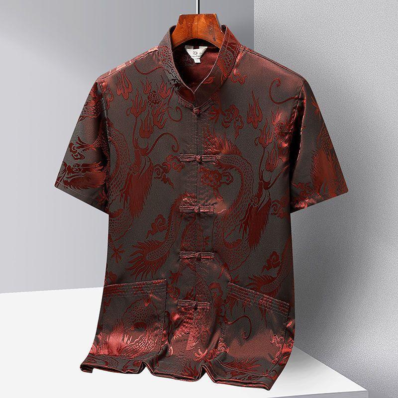 唐裝男冰絲古風短袖襯衫中老年人新中式漢服爸爸爺爺晨練太極服夏