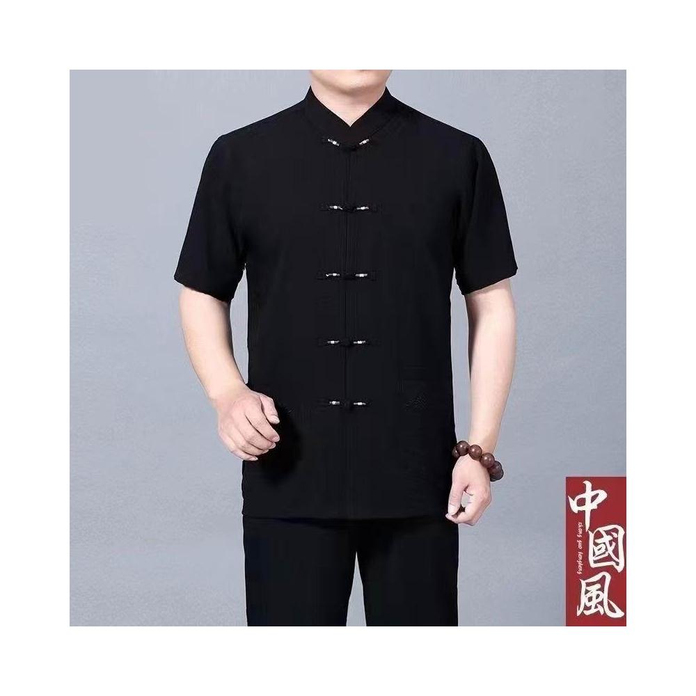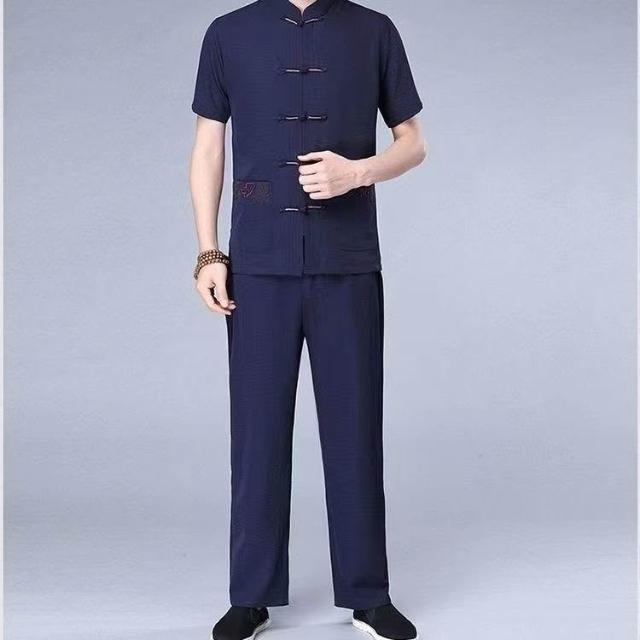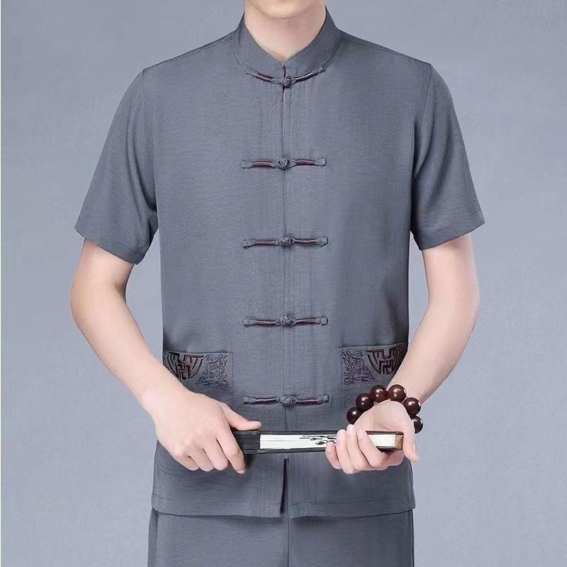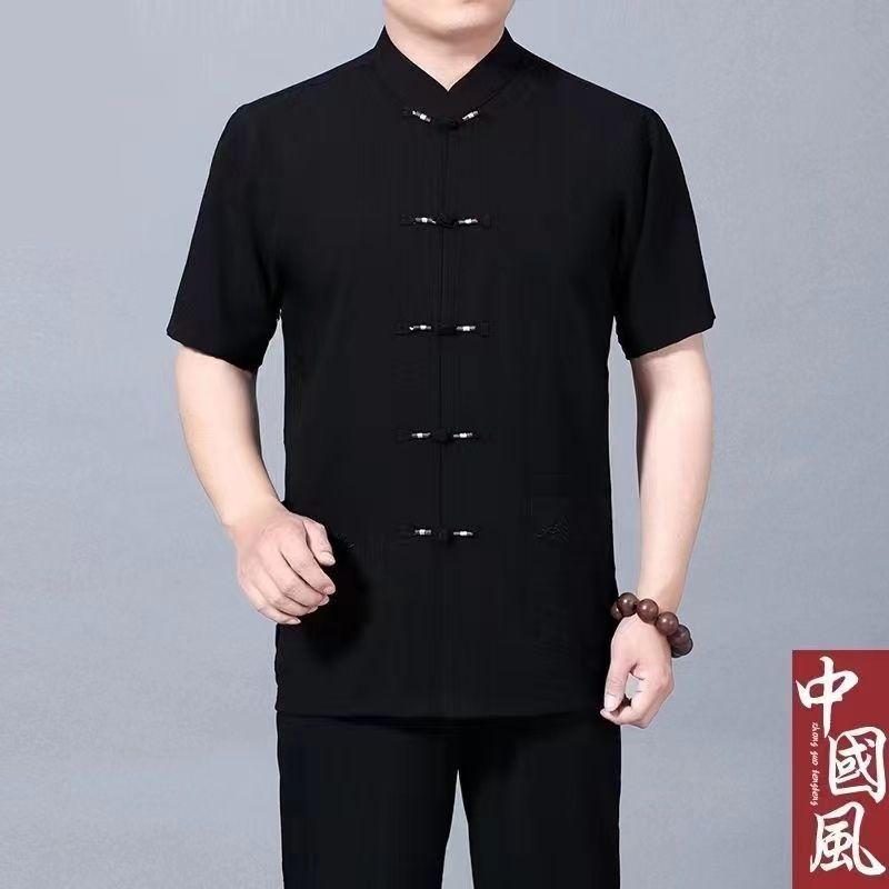 中老年唐裝男士爺爺夏季短袖老人衣服中國風棉麻套裝爸爸夏裝襯衫