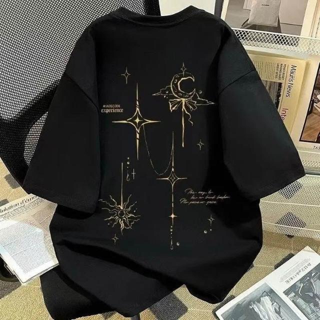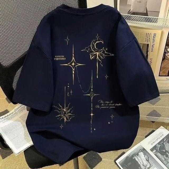 2026新款日月星辰印花100%不起球短袖T恤夏季男女百搭寬鬆上衣ins